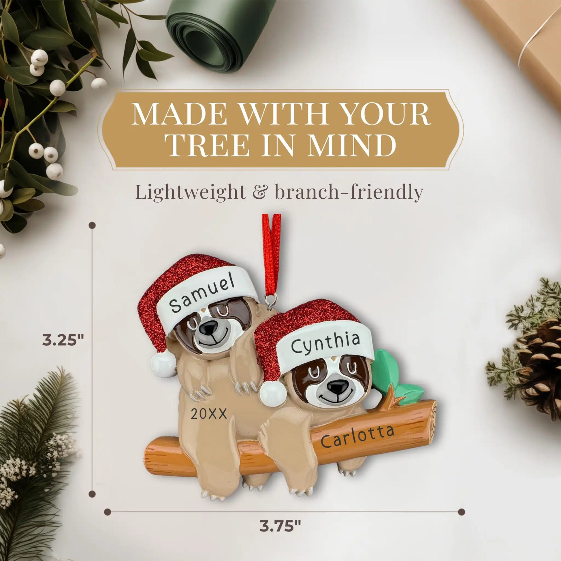 Embrace the cozy comfort of togetherness this holiday season with this absolutely adorable personalized Sloth Couple ornament, a charming keepsake for your favorite duo!