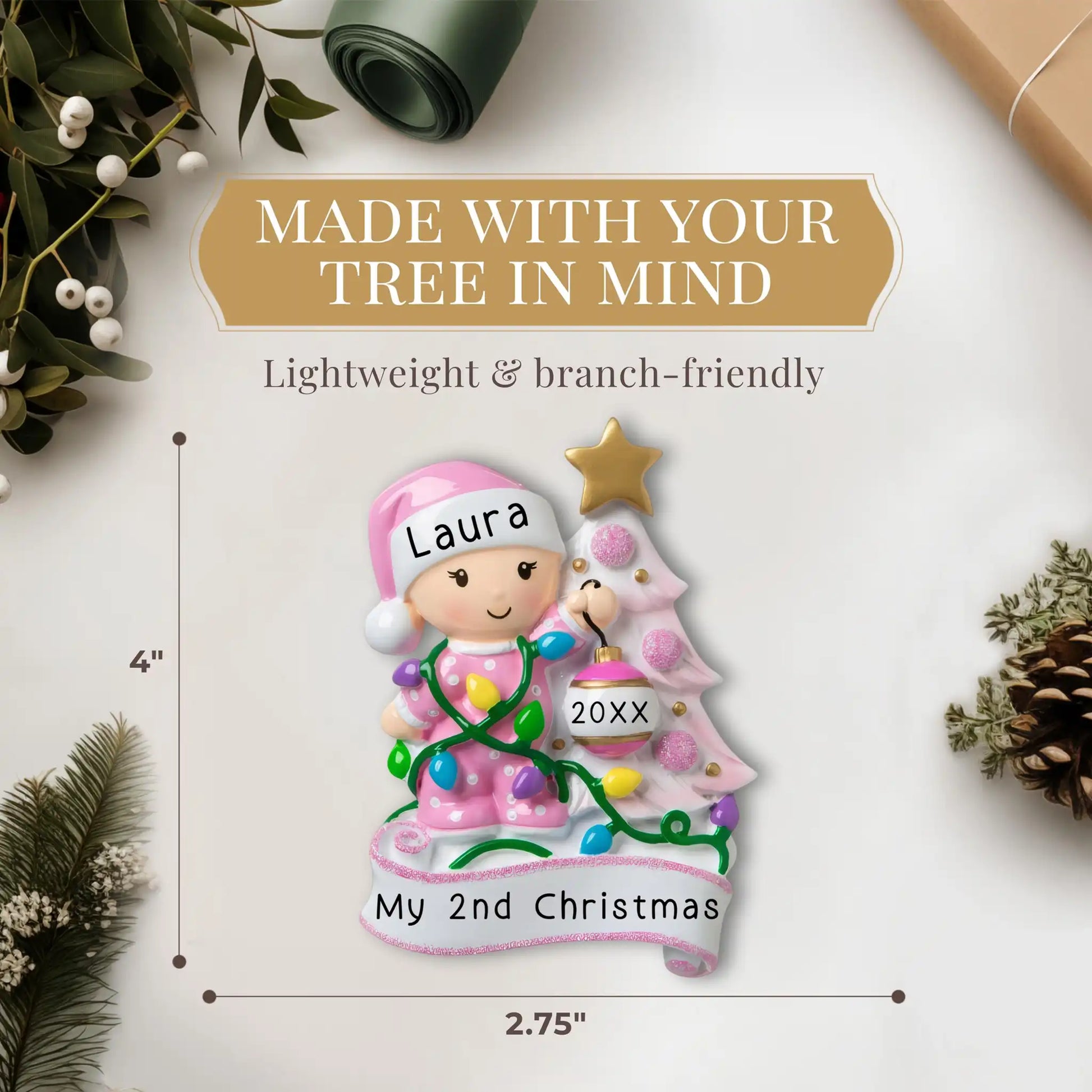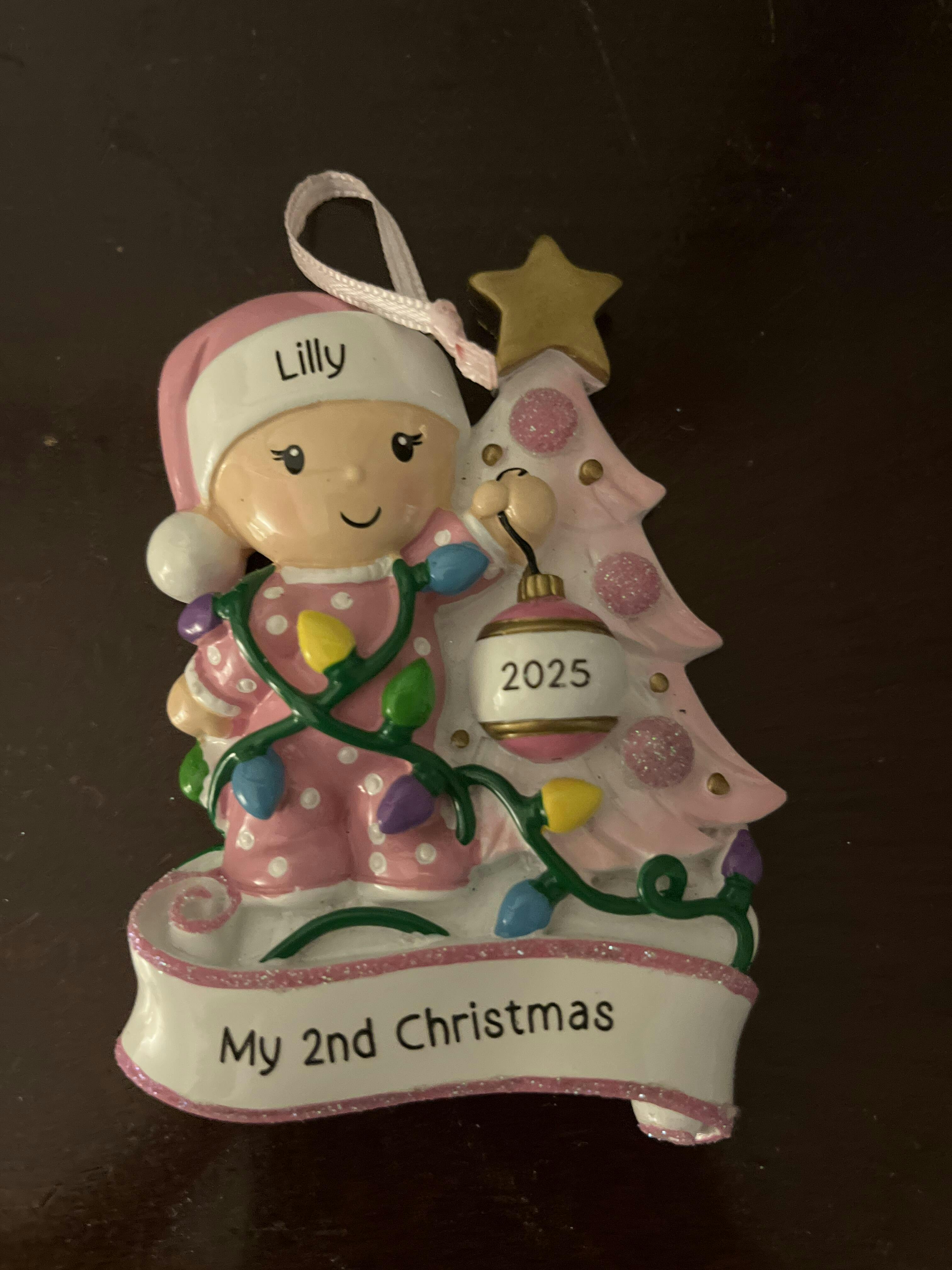 Personalized Baby's 2nd Christmas Ornament – Pretty in Pink Holiday Magic!