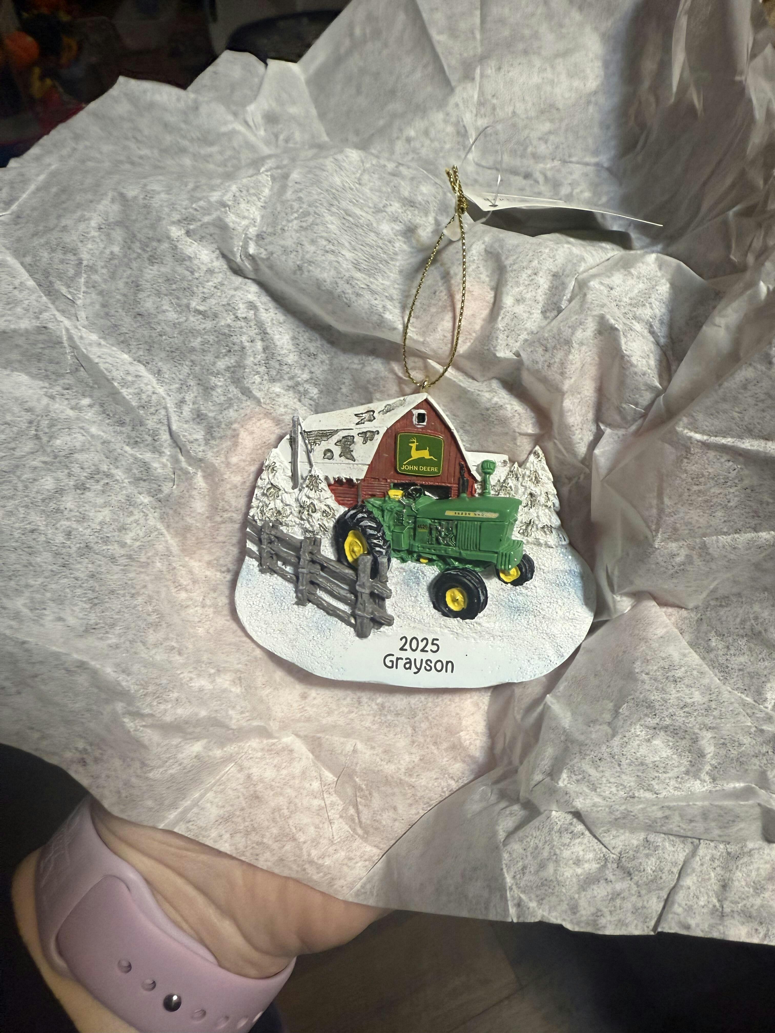 Personalize with a name, year, farm name, or short message. Includes a hanging cord. Laser engraved, gift wrapped, and shipped within 24 hours.