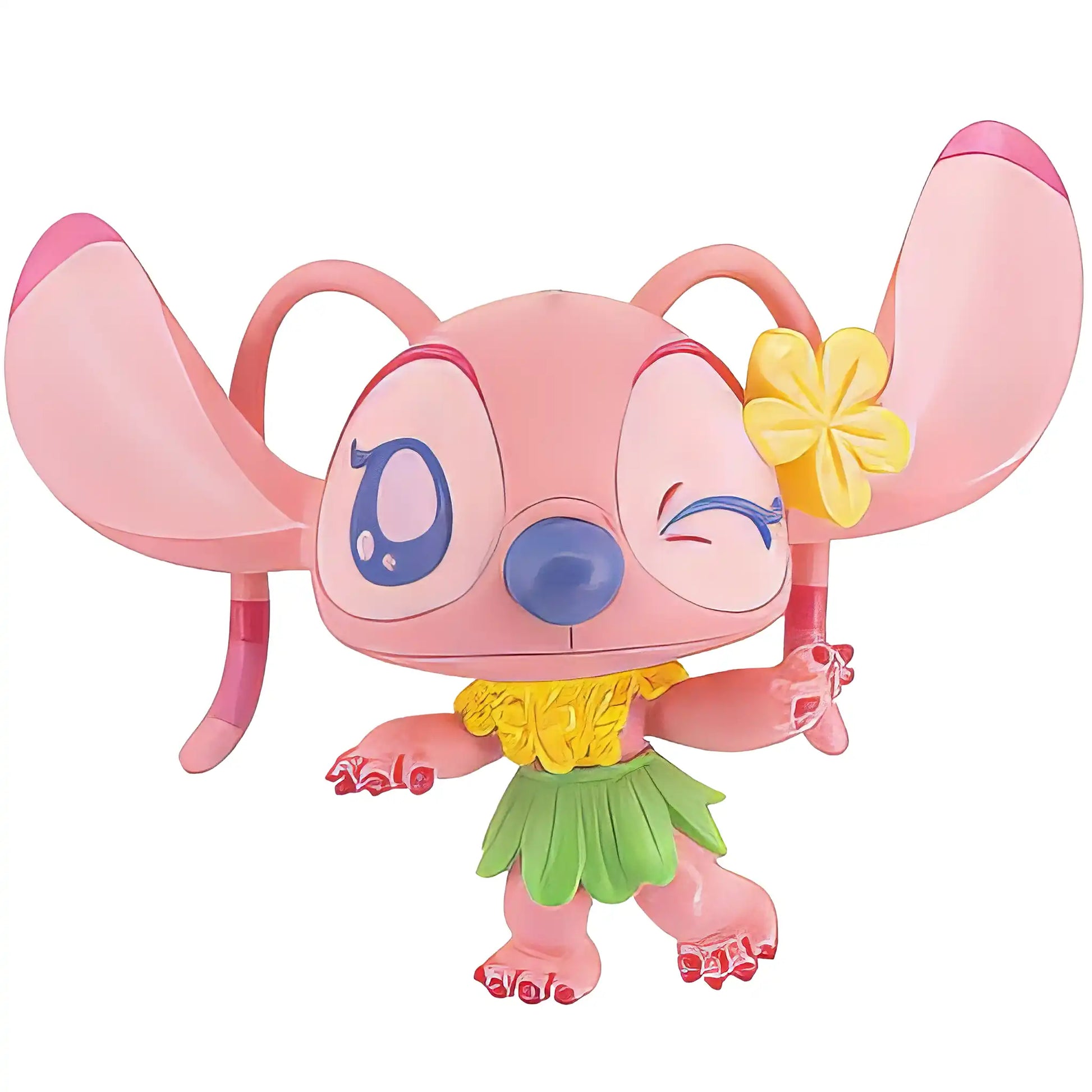 This fun ornament features Angel (Experiment 624), the charming pink alien from the Lilo & Stitch movie, wearing a cute yellow lei and a green hula skirt. She's got a big smile and a flower tucked behind her ear!