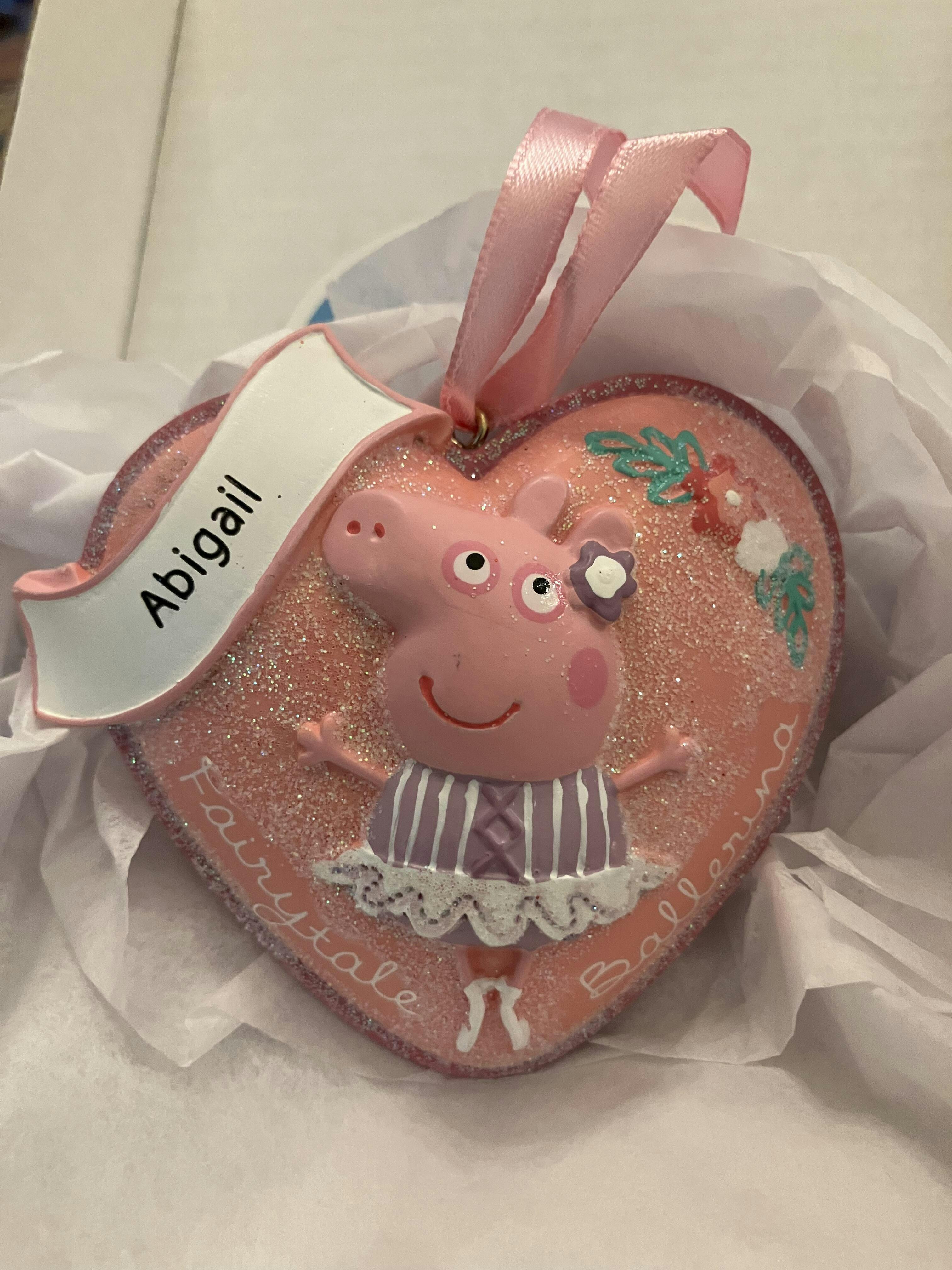 Perfect for any Peppa fan, this adorable ornament features everyone's favorite pink piggy dressed as a princess, complete with a sparkly tiara and a tutu ready to twirl!