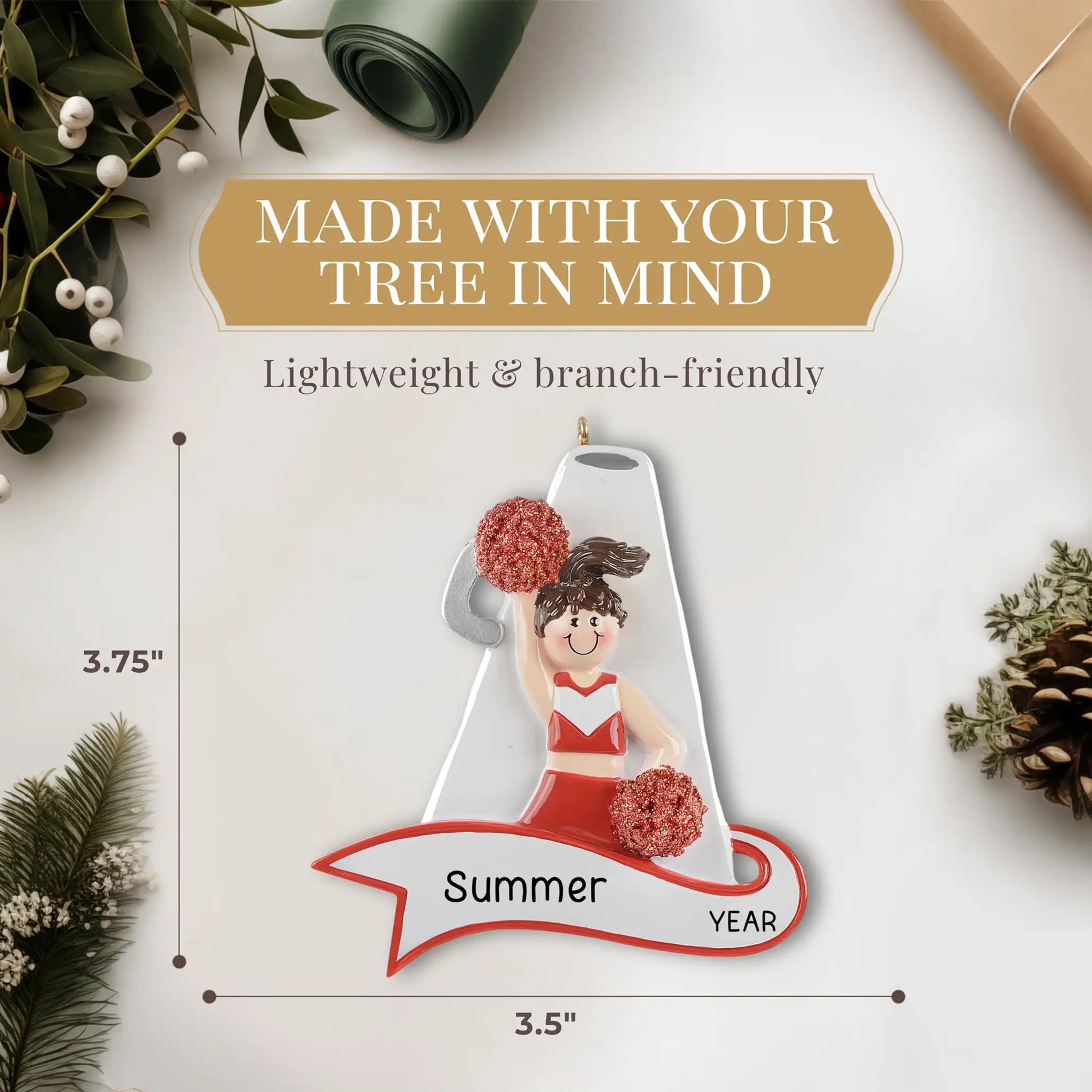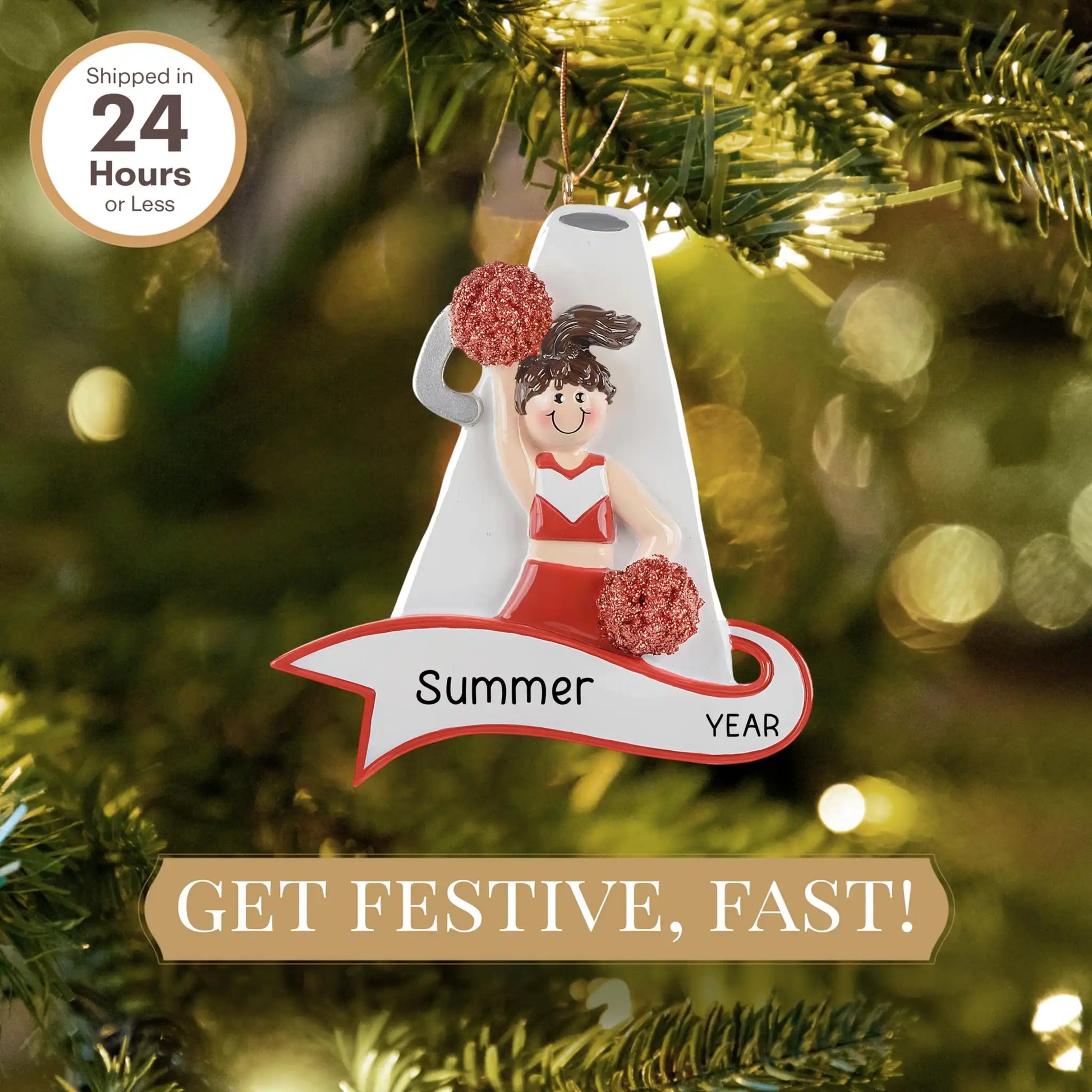 Go Team! Personalized Cheerleader Ornament – Red Pom Poms Edition