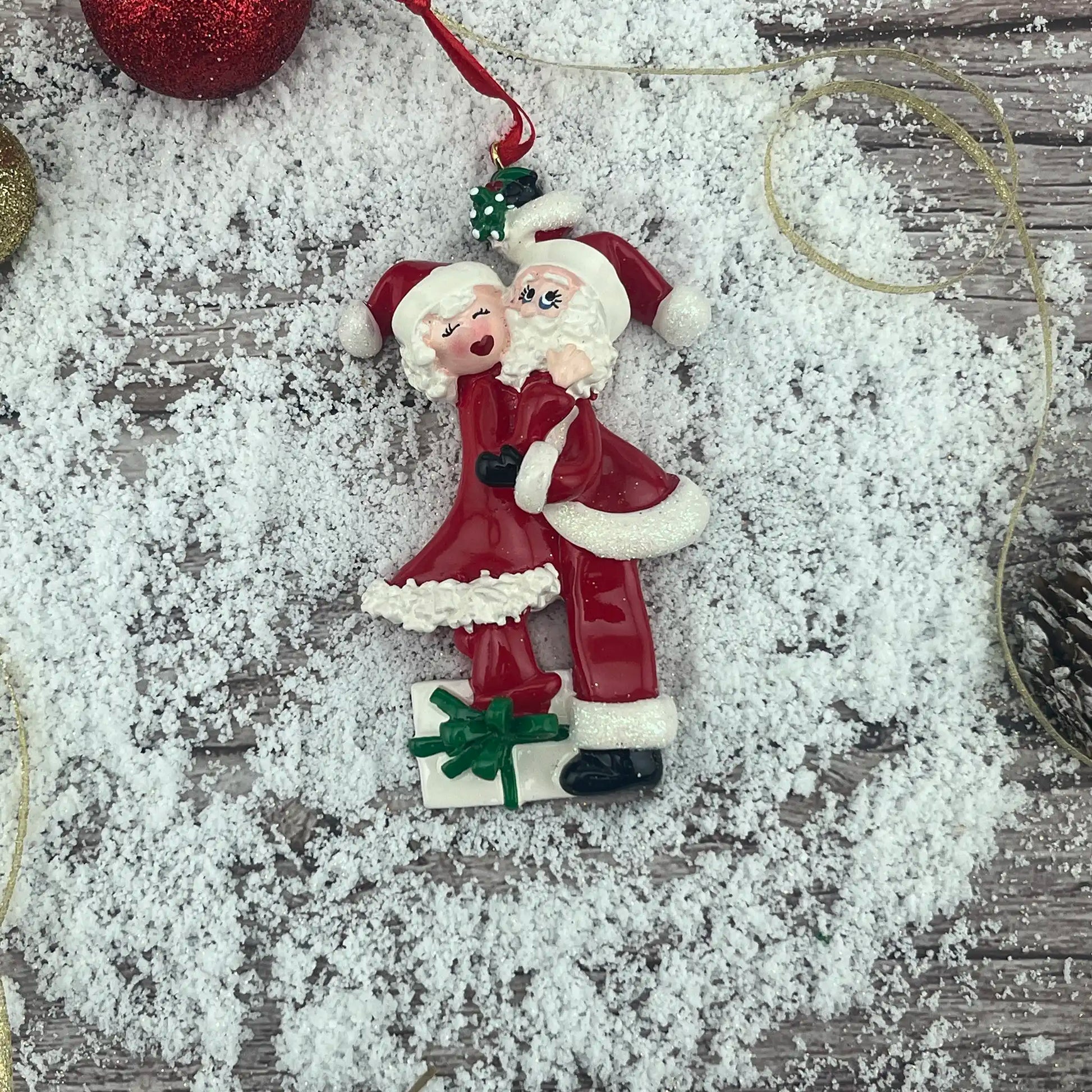 With their matching red suits and festive expressions, this ornament is a perfect way to honor your favorite couple or create a fun keepsake for you and your partner.