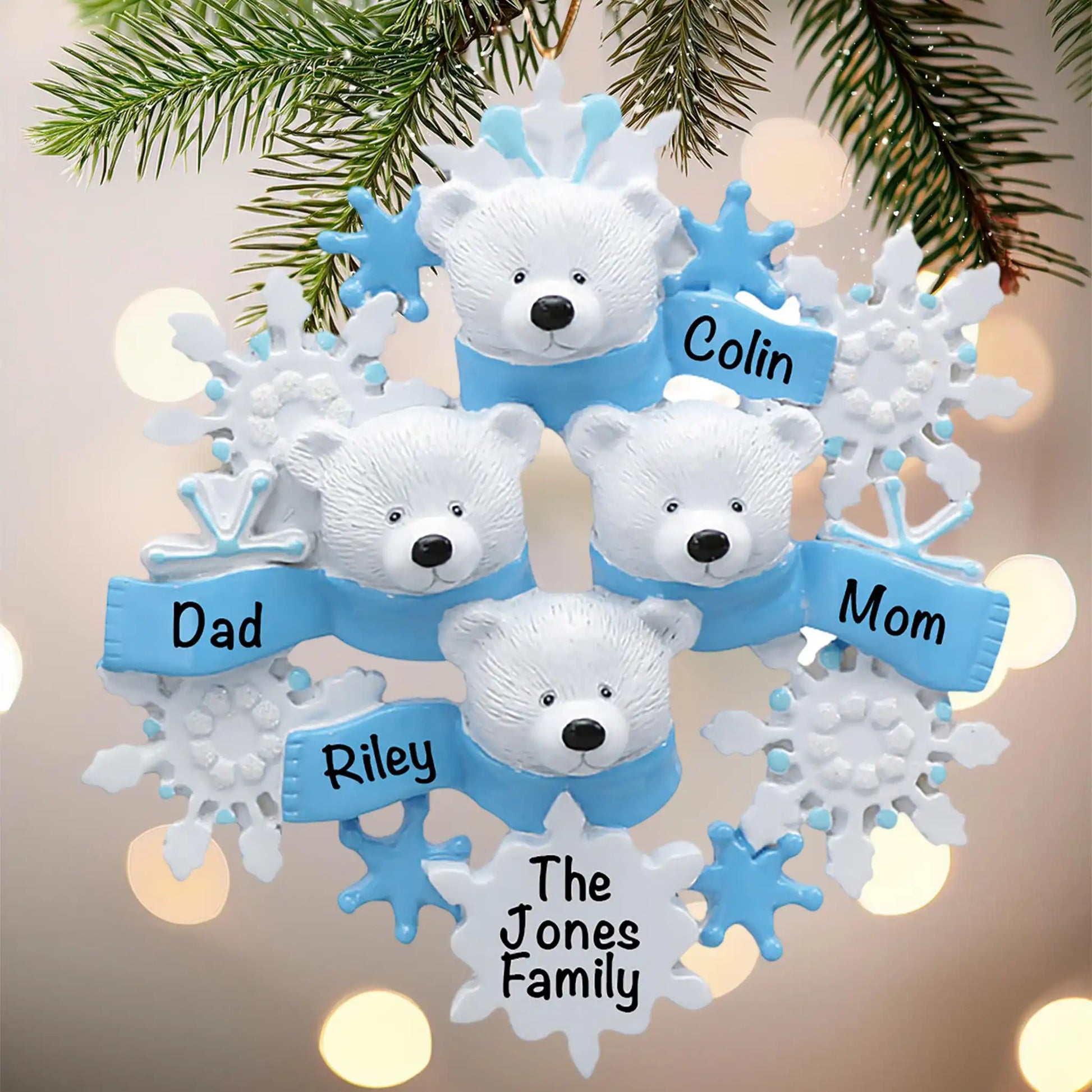 • The polar bear family ornament tells a heartwarming story.