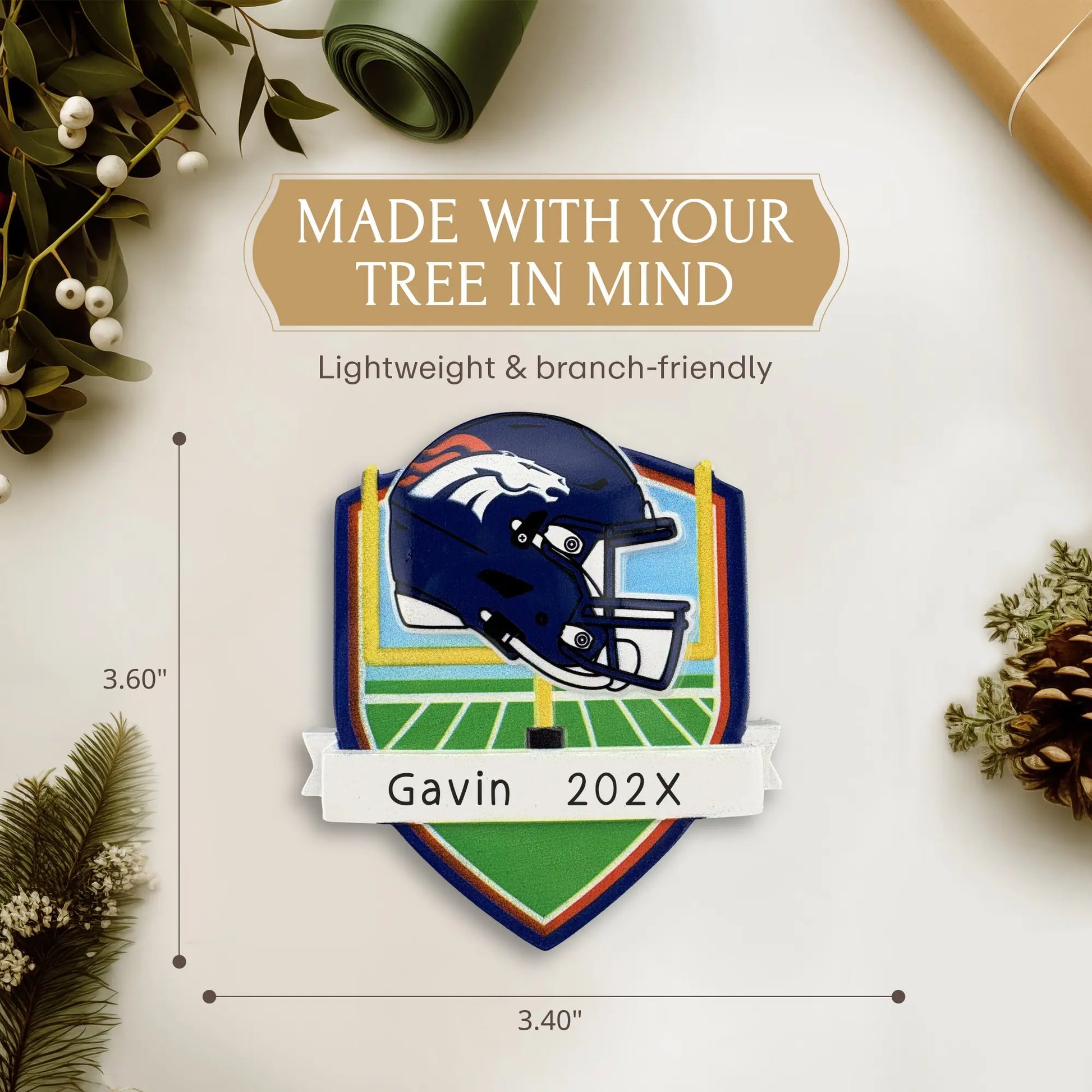 Authentic orange and navy team colors with sharp helmet details make this Denver Broncos ornament a standout on any Christmas tree. From the roar of Broncos Country to unforgettable moments at Empower Field at Mile High, this personalized football ornament brings Mile High energy to your holidays. Precision laser engraving and fast 24-hour shipping.