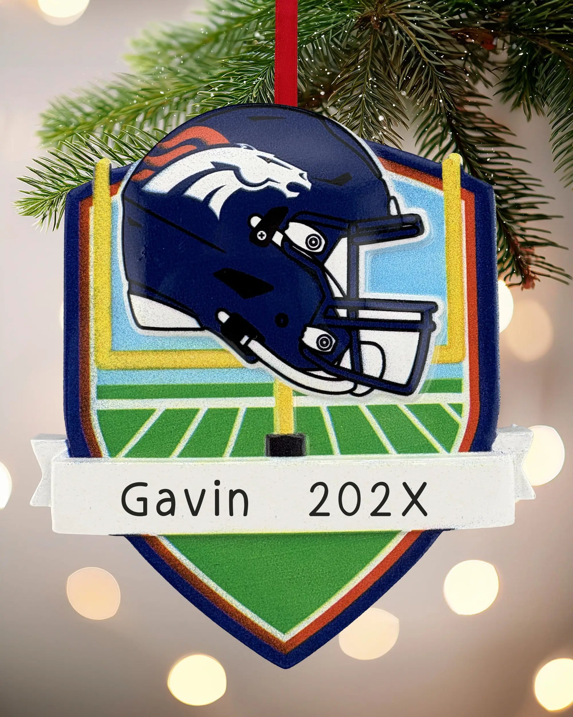 Made from durable resin and hand-painted in authentic Denver Broncos colors. The banner is laser engraved with your chosen name, jersey number, or year. Each Broncos Christmas ornament includes a ribbon for easy hanging on your holiday tree.