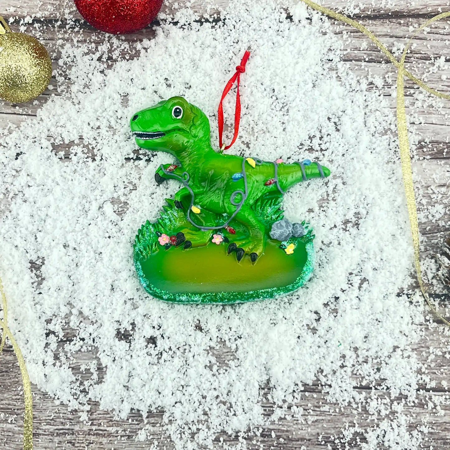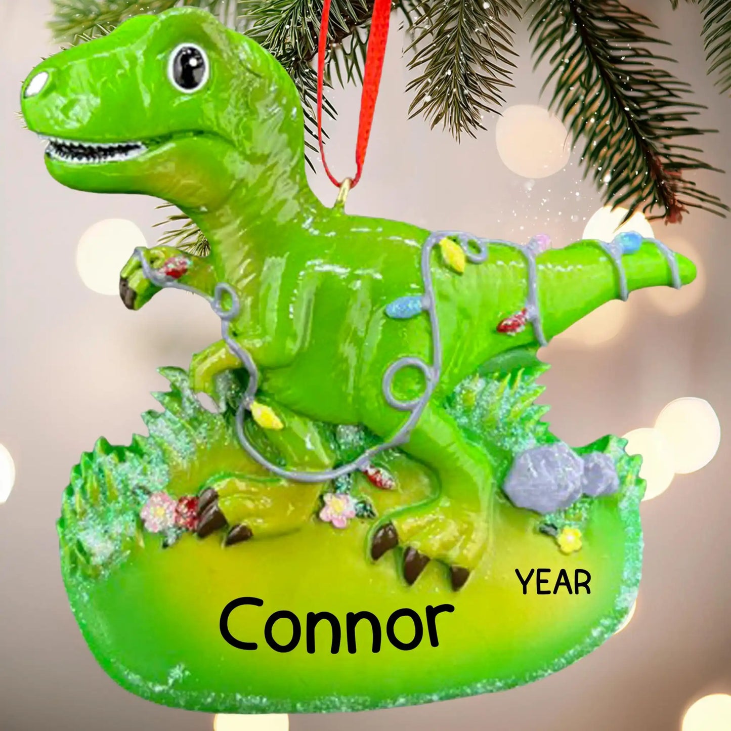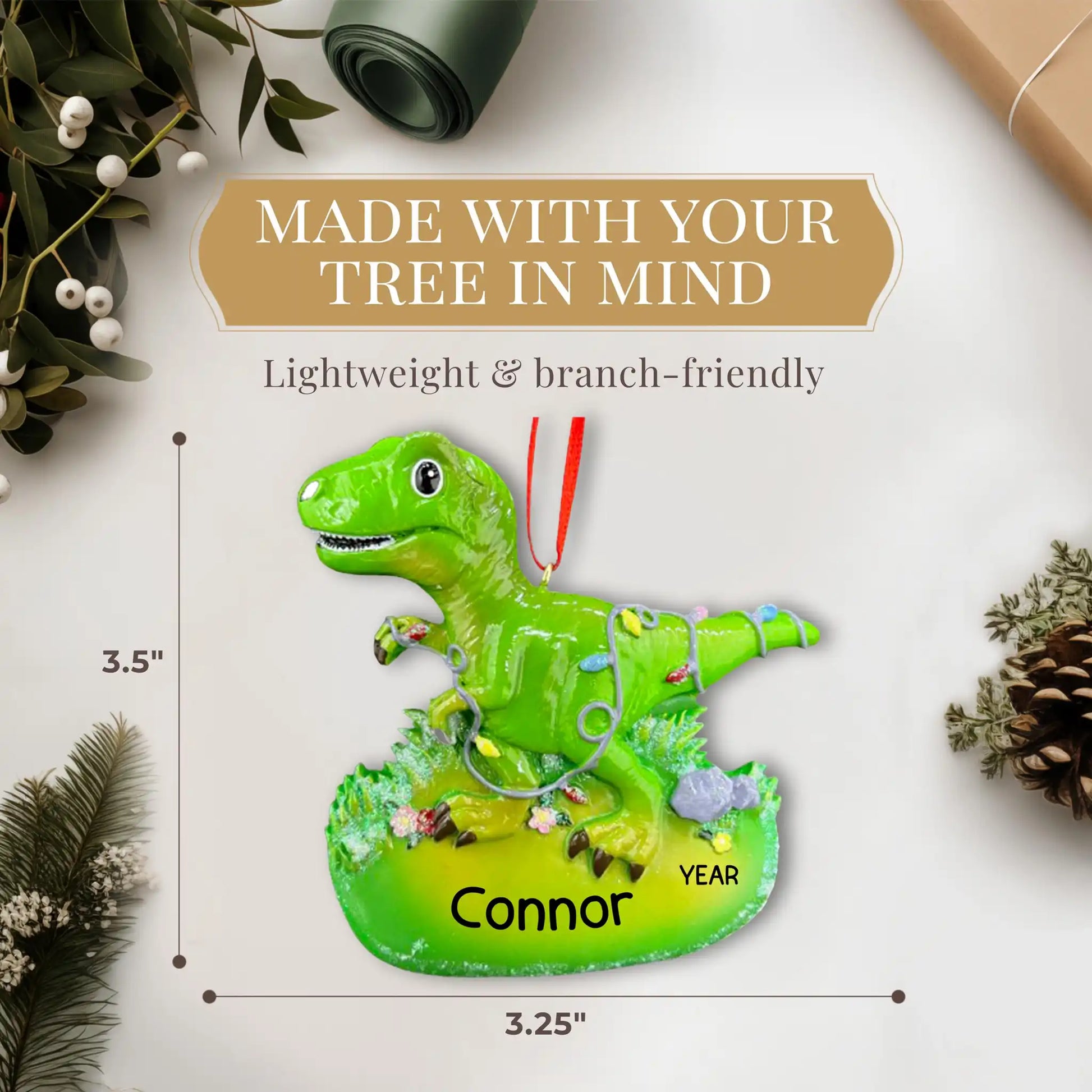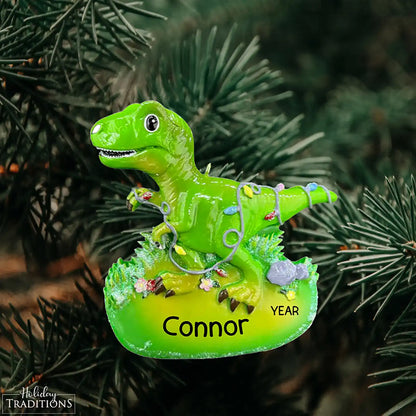 Dinosaur T-Rex Personalized Ornament - Christmas Lights