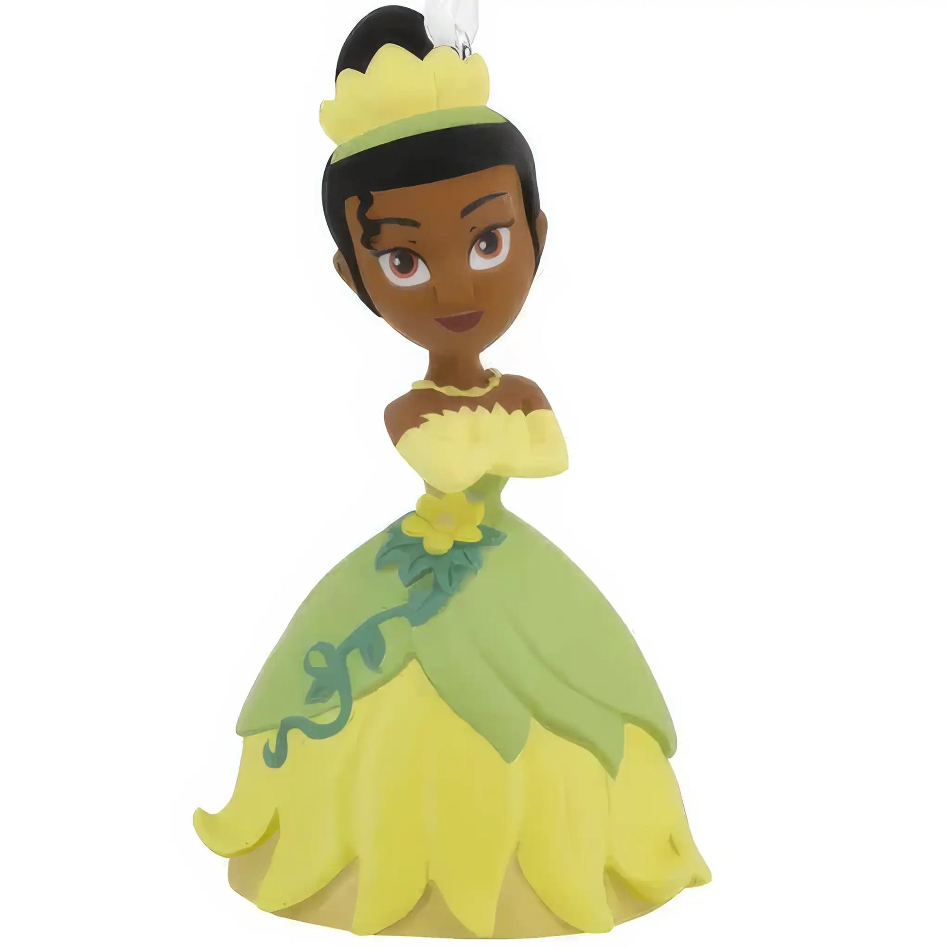 Celebrate Disney's hardest-working princess with this officially licensed Tiana ornament featuring her in the iconic yellow and green ball gown from The Princess and the Frog.