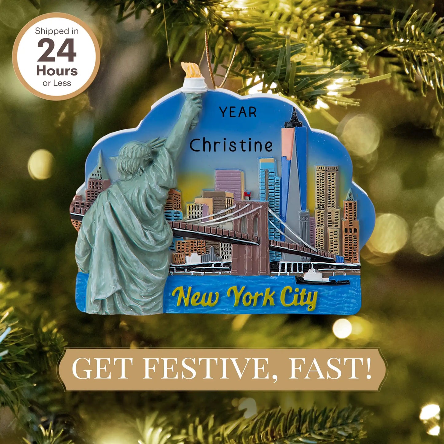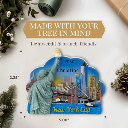 Customizable with your name and year, it makes a perfect keepsake to remember your favorite city or a thoughtful gift for any NYC enthusiast. Whether you're decking the halls or giving a unique present, this ornament adds a touch of Big Apple charm to your holiday décor.