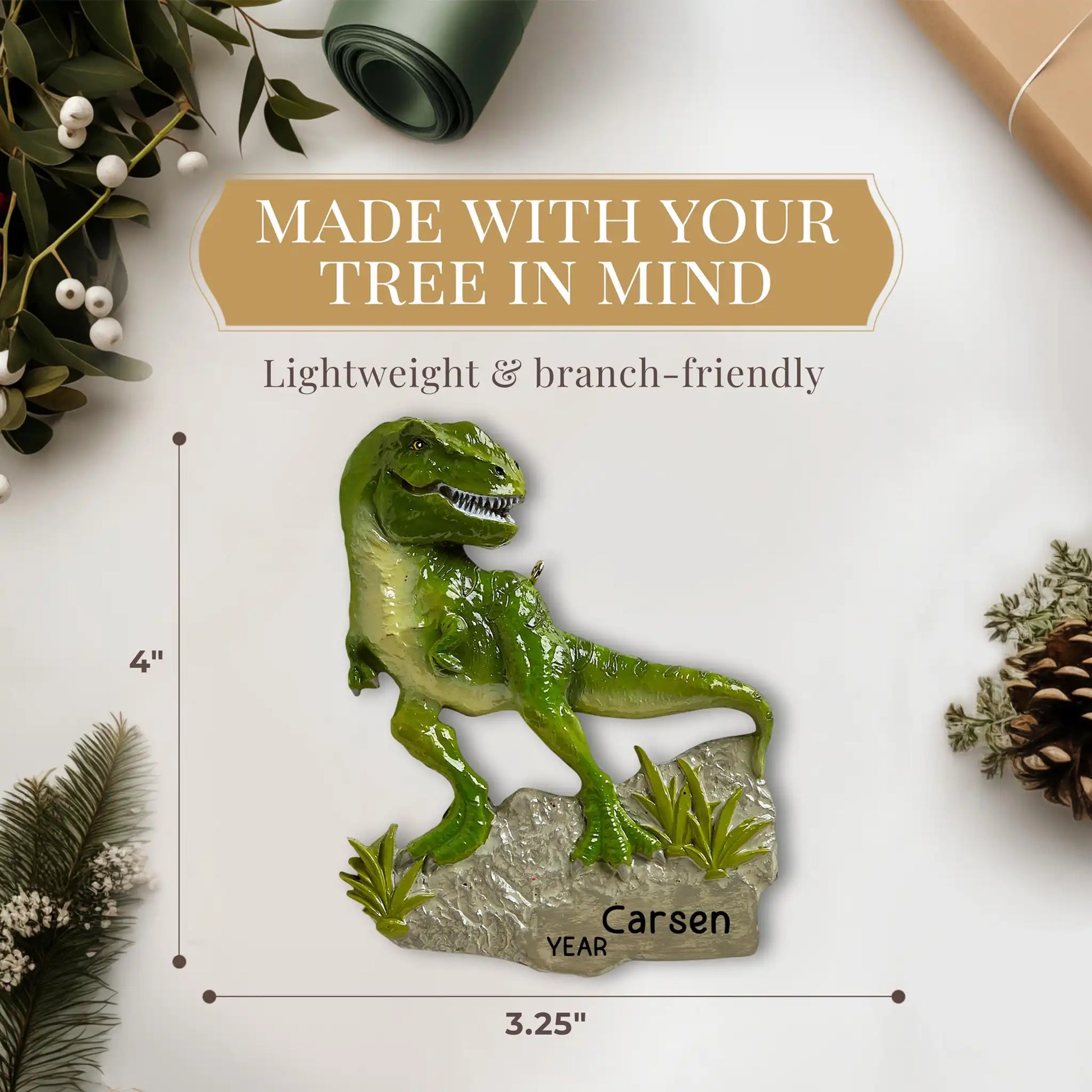 And with our lightning-fast personalization and shipping within 24 hours, this dino delight will arrive faster than a meteor! Get ready to make your holiday decorations roar with excitement!