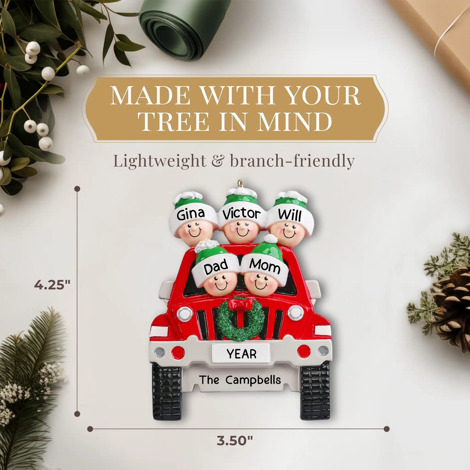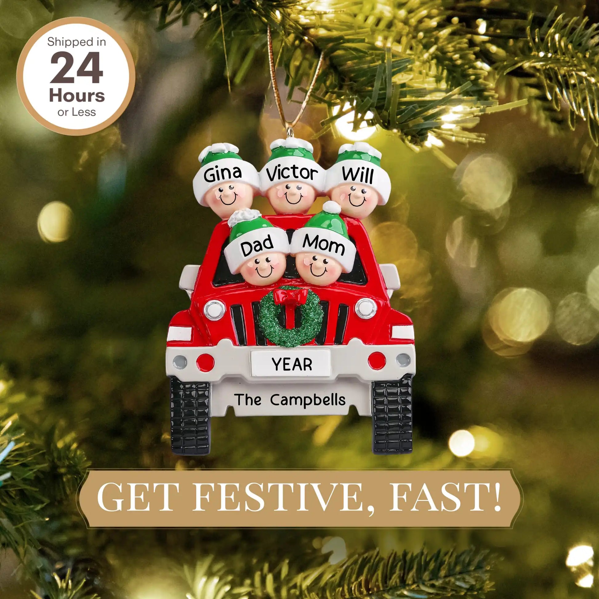 Aprovecha la temporada navideña con este adorno navideño de familia de 5 SUV , un complemento encantador para tu decoración festiva. Gracias a una meticulosa atención al detalle, este adorno presenta un encantador diseño de SUV, con una familia de cinco integrantes: símbolo de unión y alegría, que simboliza la alegría que sentimos en familia. No hay nada mejor que esto para las familias que disfrutan de viajes y aventuras en carretera.