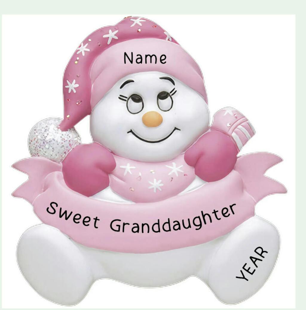 Adorno navideño de nieta con bebé de nieve