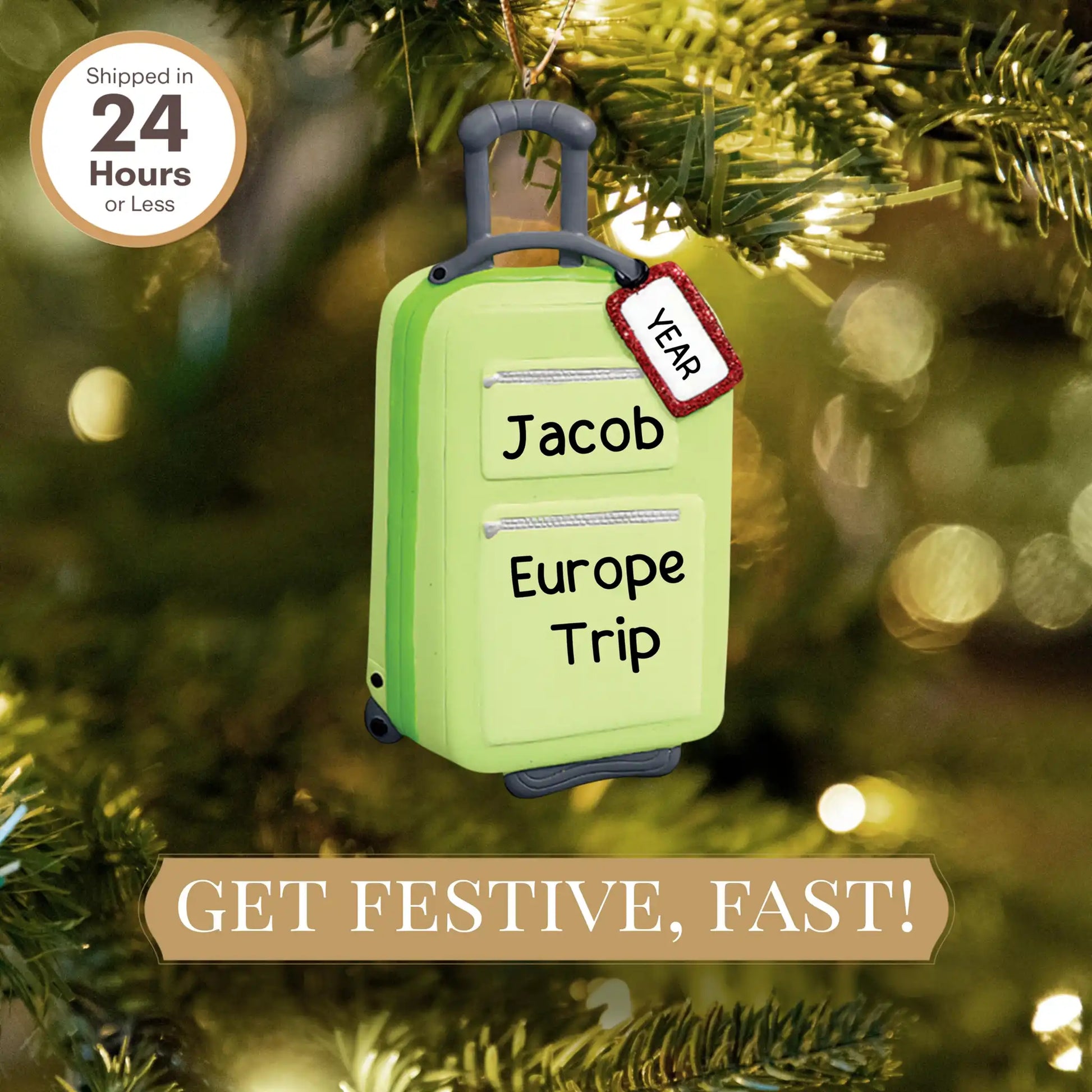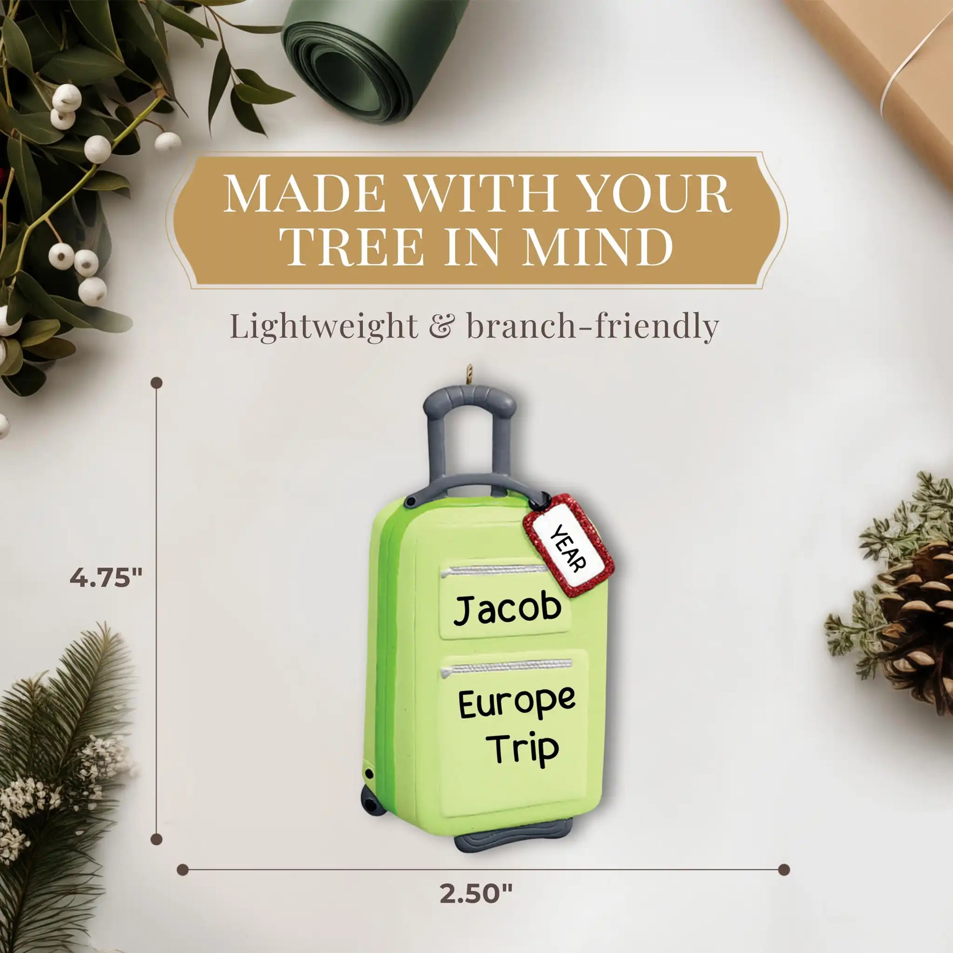 Para quienes viajan constantemente y siempre están planeando su próxima aventura (o simplemente soñando con un viaje mientras están en casa), ¡este adorno de maleta de viaje personalizado es el regalo perfecto! Diseñado para parecerse a una maleta pequeña, con ruedas y etiqueta, este adorno le da un toque de pasión por los viajes al árbol de Navidad.