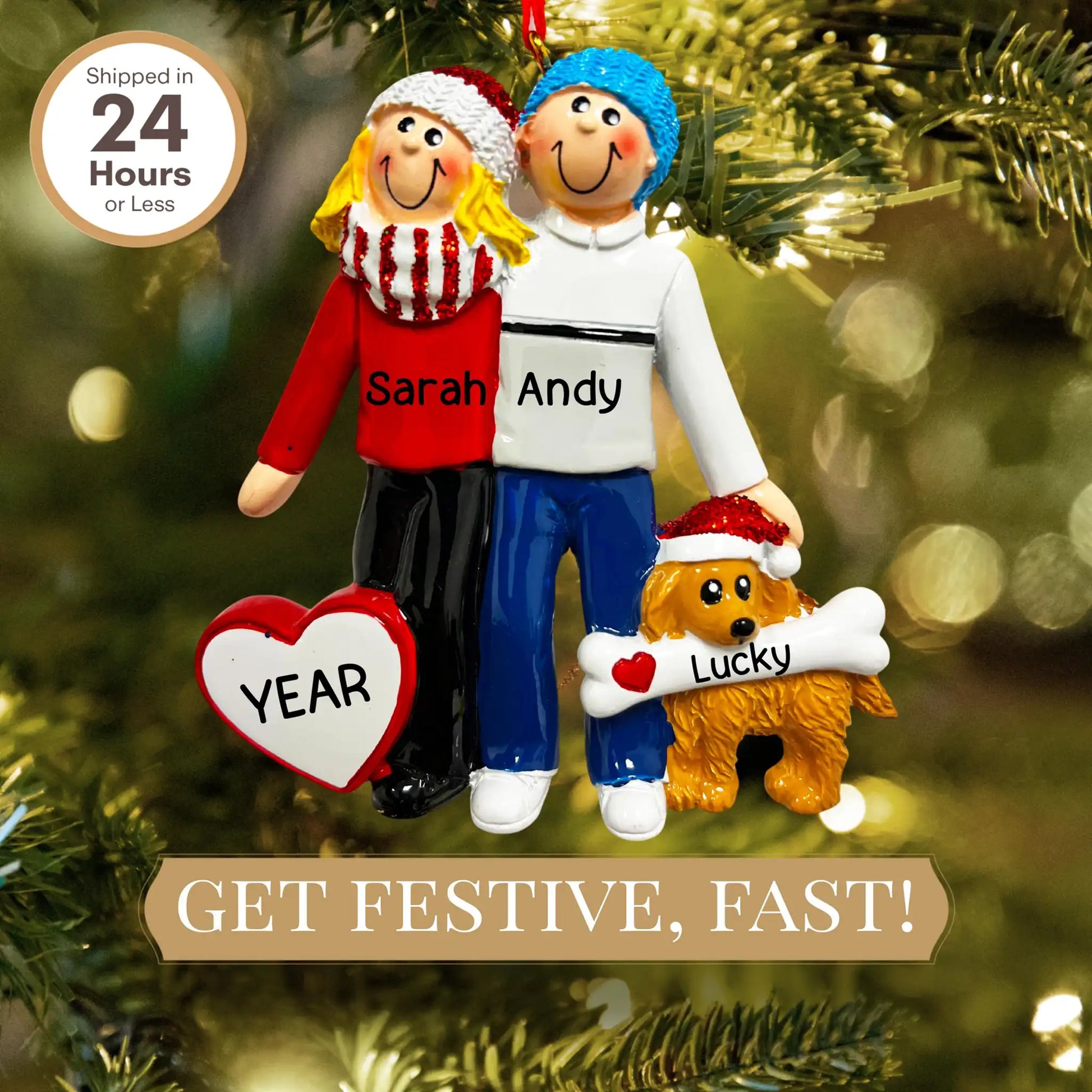 ¡Este adorno de pareja con perro seguramente será un delicioso homenaje a su miembro peludo favorito de la familia durante los años venideros!