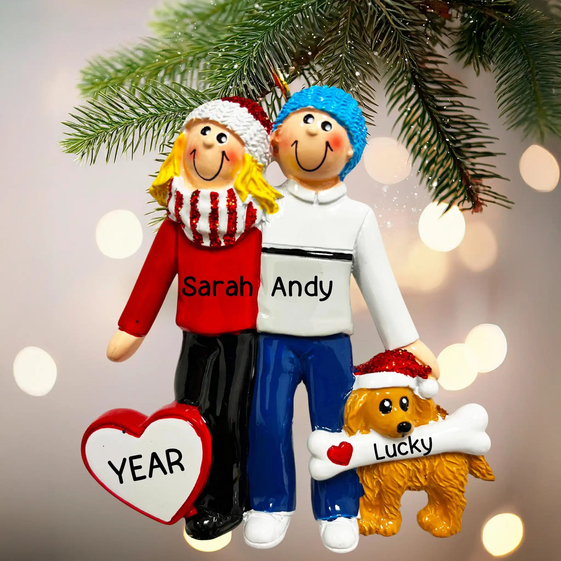 Adorno personalizado de pareja con perro - Rubio