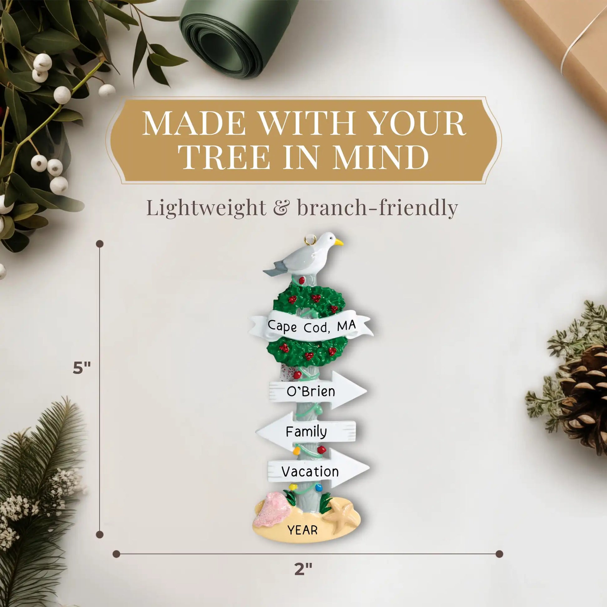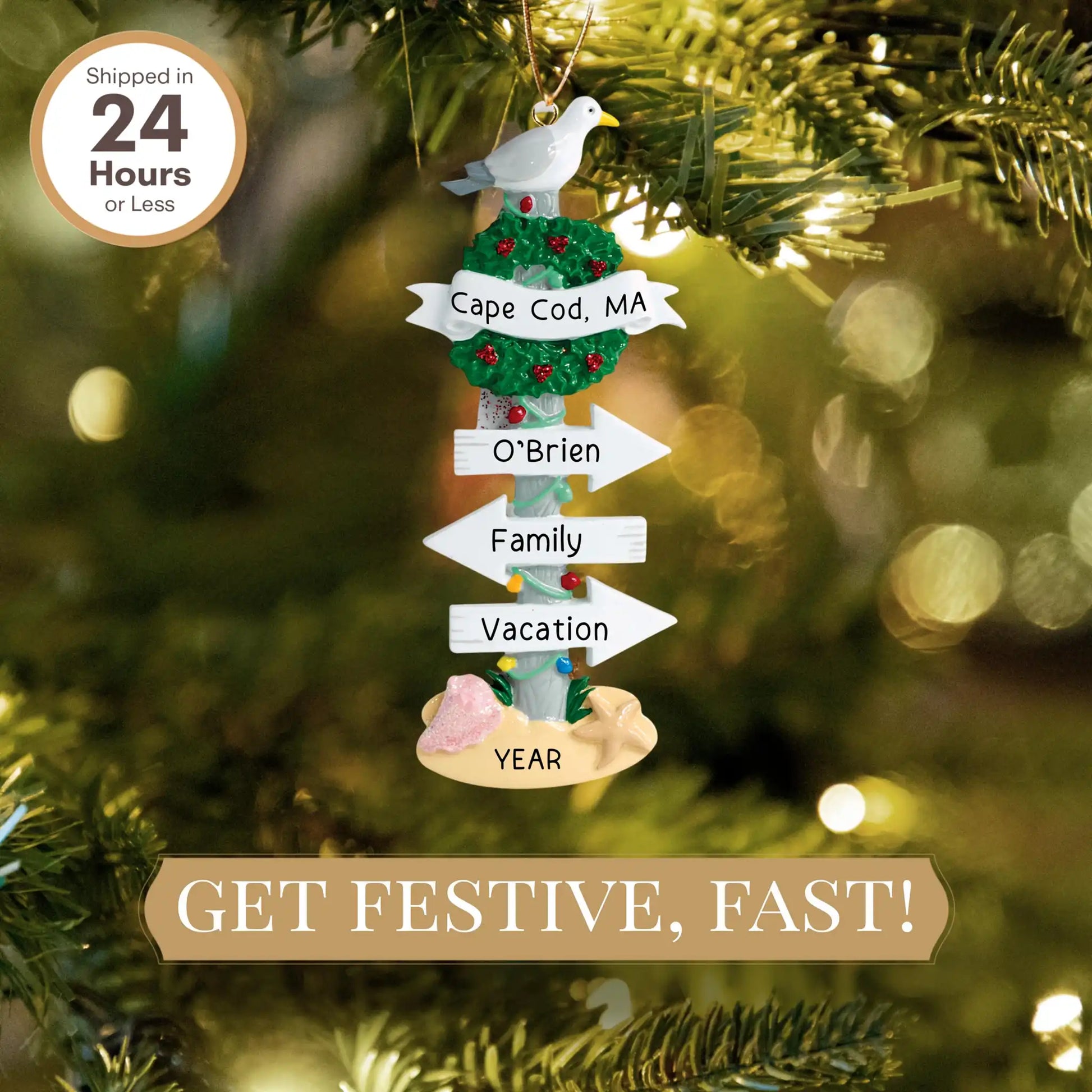 ¡Captura la alegría de las vacaciones playeras favoritas de tu familia con nuestro Adorno Navideño Personalizado de Vacaciones en la Playa! Este adorno único presenta una gaviota festiva sobre un poste indicador, rodeada de detalles playeros como conchas y arena. Personaliza el adorno con el nombre de tu familia, tu lugar de vacaciones y el año para crear un recuerdo especial que evoque los recuerdos de las fiestas. ¡Es el regalo perfecto para los amantes de la playa y las familias que atesoran sus escapadas a la costa!