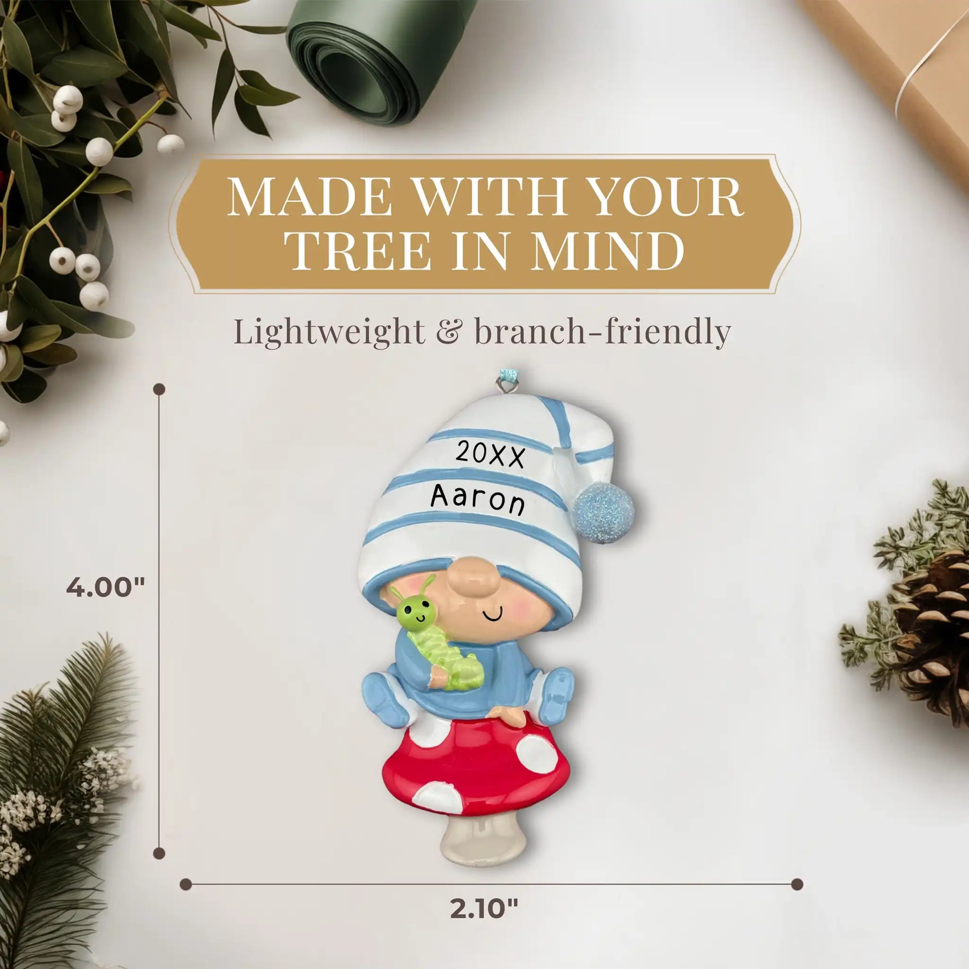 Celebra la Navidad de tu bebé, o simplemente su gran personalidad, con este adorable adorno de gnomo. Añade su nombre y año para un recuerdo lleno de encanto y fantasía.