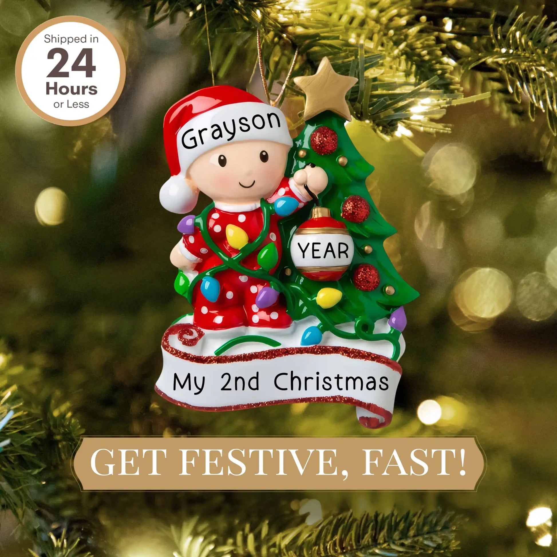 Brillante, llamativo y lleno de alegría navideña , este adorno rojo para bebé es perfecto para celebrar a tu pequeño. Ya sea la primera Navidad de tu bebé o simplemente un recuerdo especial para colgar en el árbol año tras año, este adorno se convertirá en uno de los favoritos de la familia.