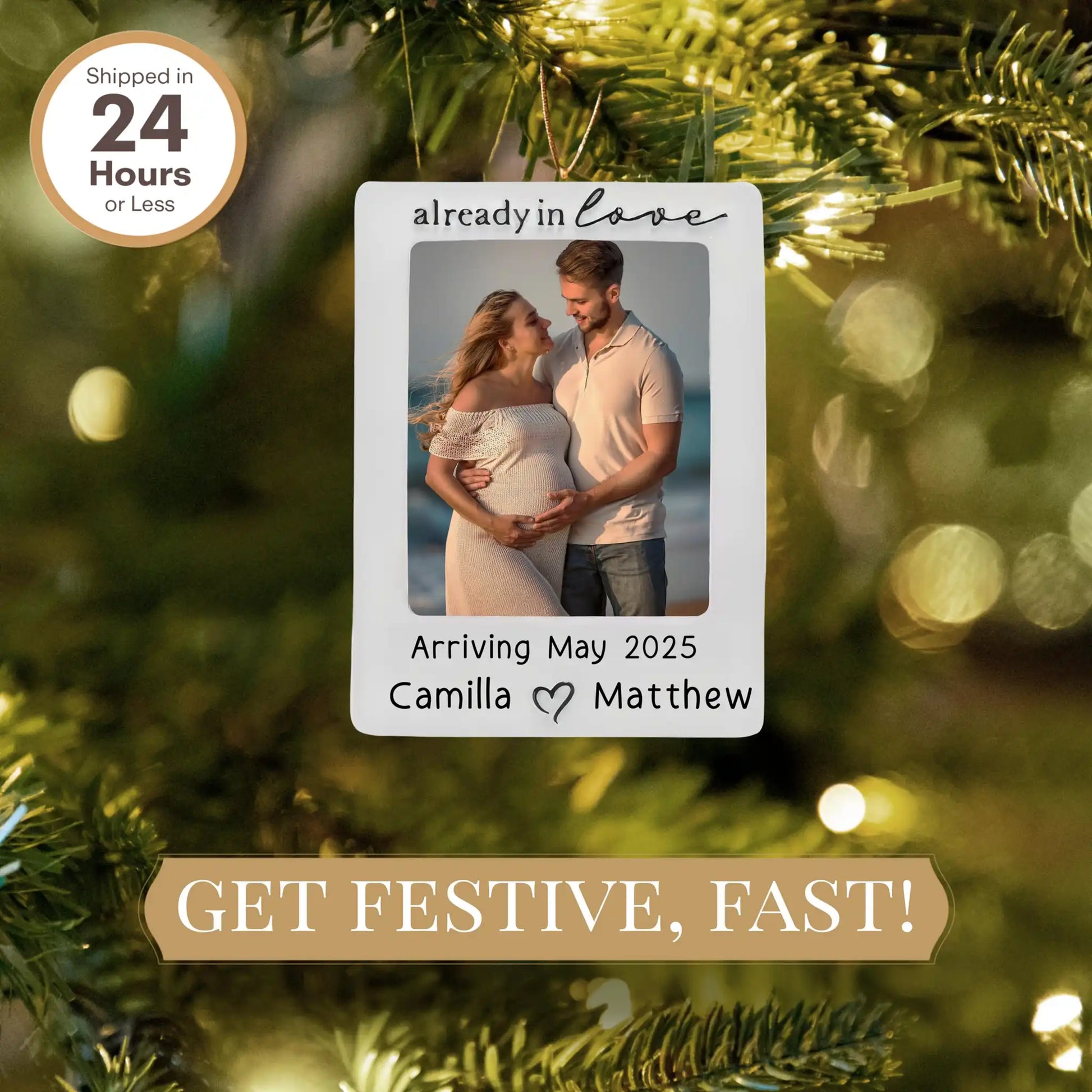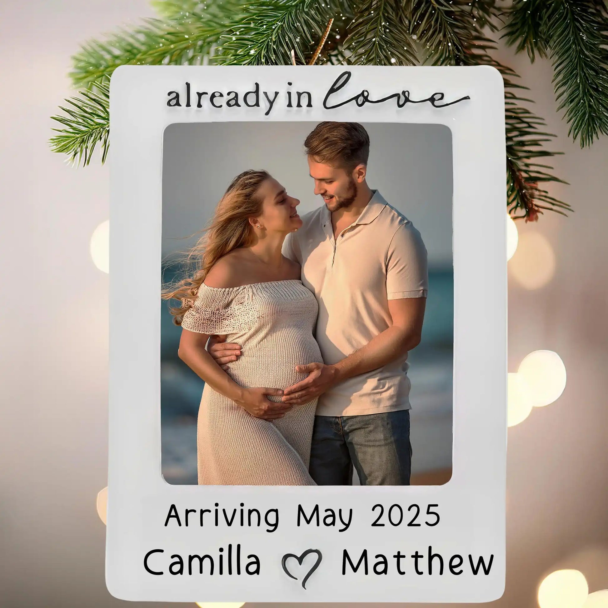 Celebra la alegría de los nuevos comienzos con este hermoso marco de fotos personalizado "Ya estamos enamorados". Perfecto para capturar ese momento especial de anticipación, este recuerdo está diseñado para guardar una preciosa foto de la futura pareja.