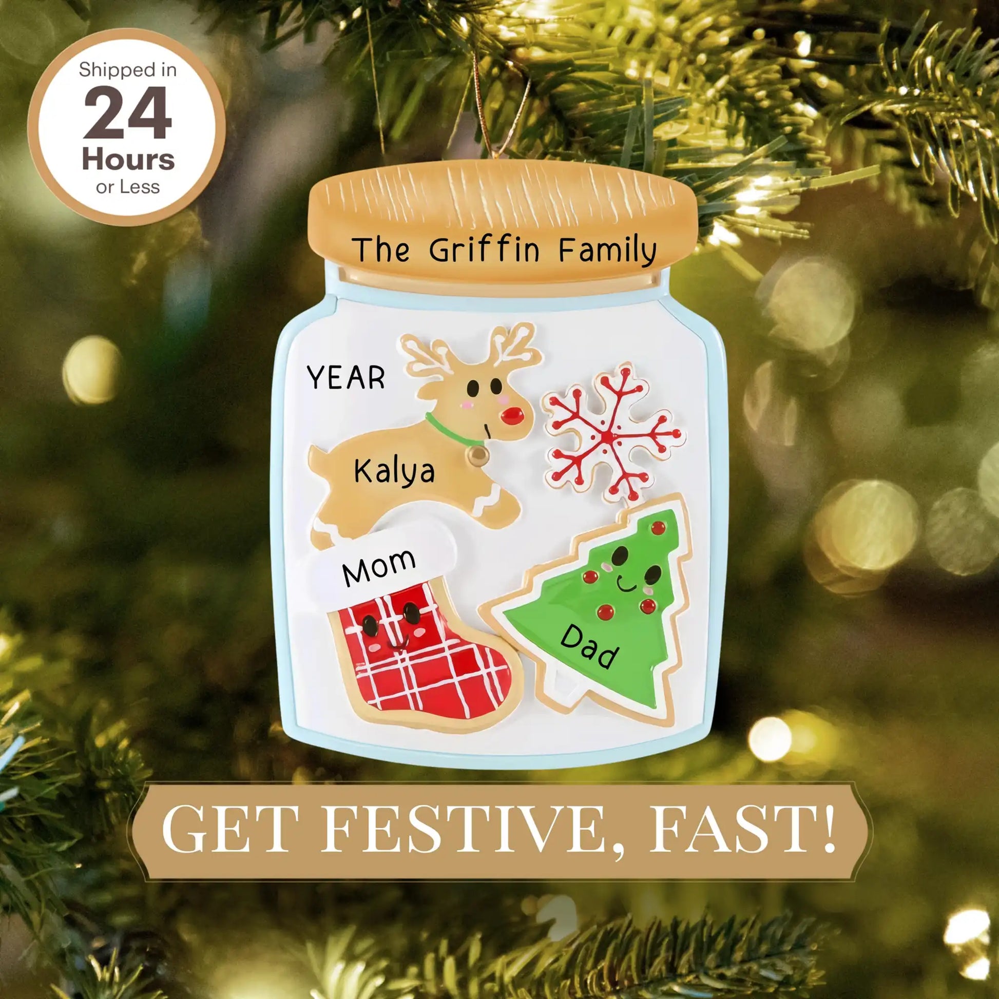 Personaliza cada galleta con un nombre y el año para crear un adorno único que capture la esencia de tu familia. Ya sea para ti o para tus seres queridos, este adorno será un detalle significativo y divertido para cualquier árbol de Navidad.