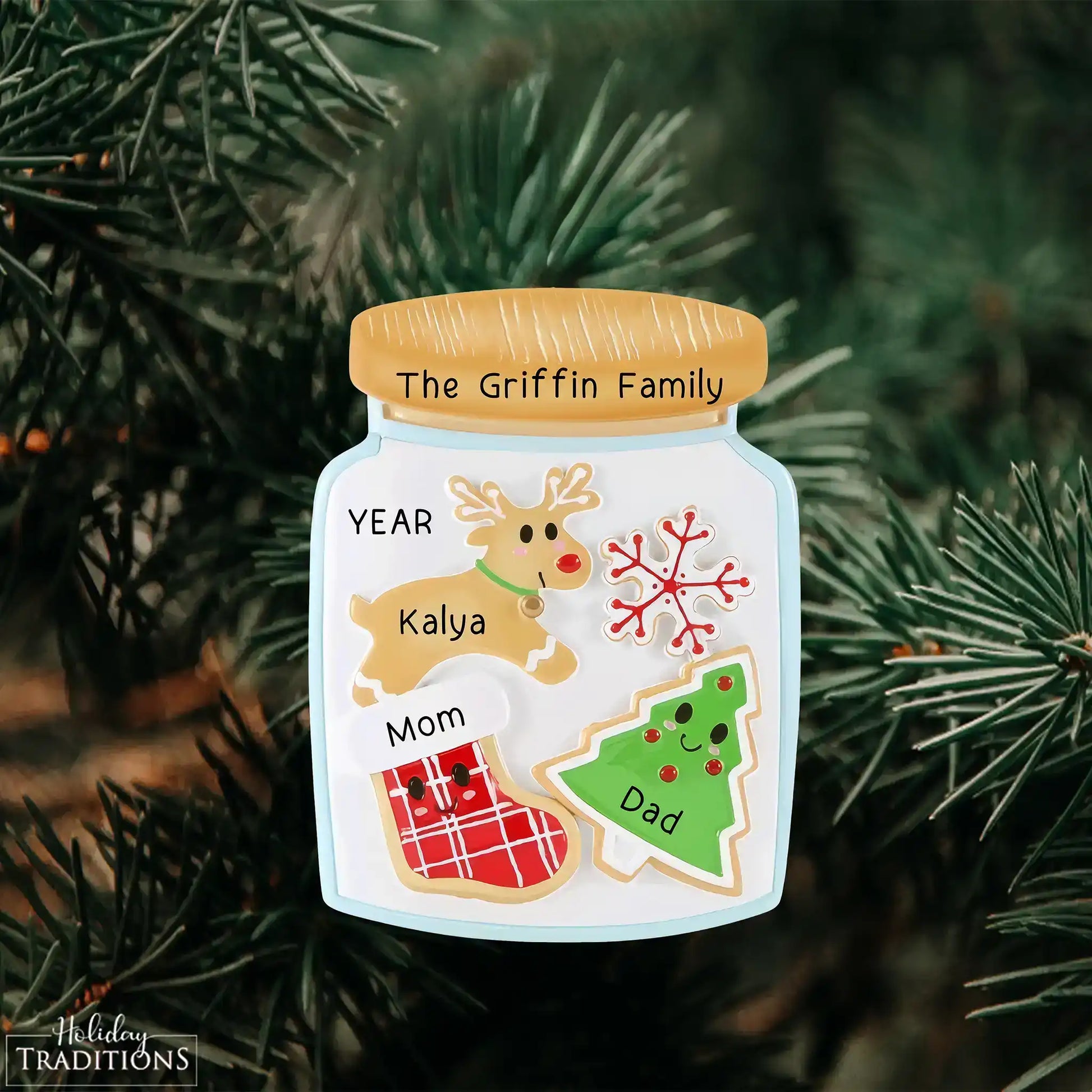Adorno navideño de familia de 3 en forma de tarro de galletas