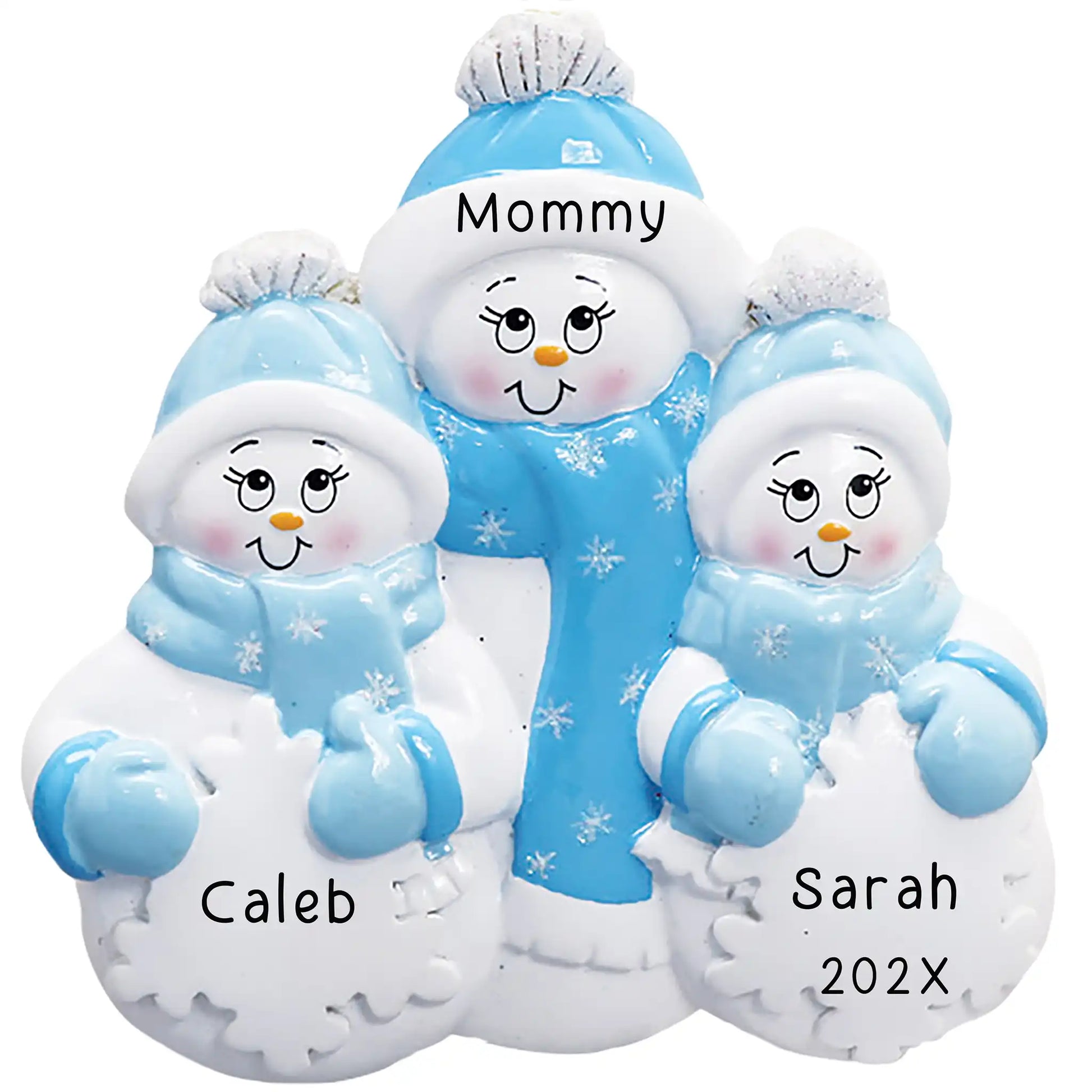 Adorno navideño de muñeco de nieve para padres solteros y dos niños