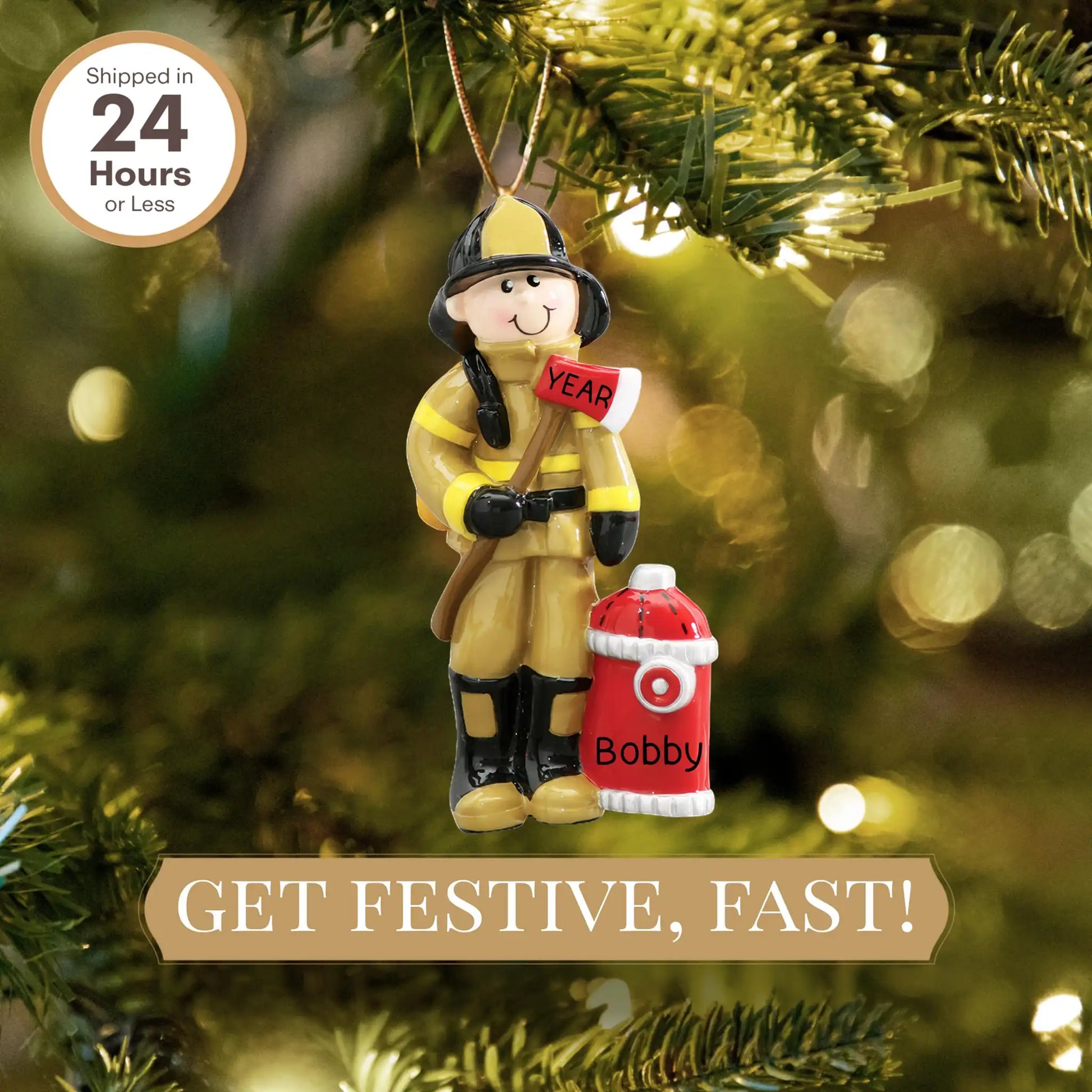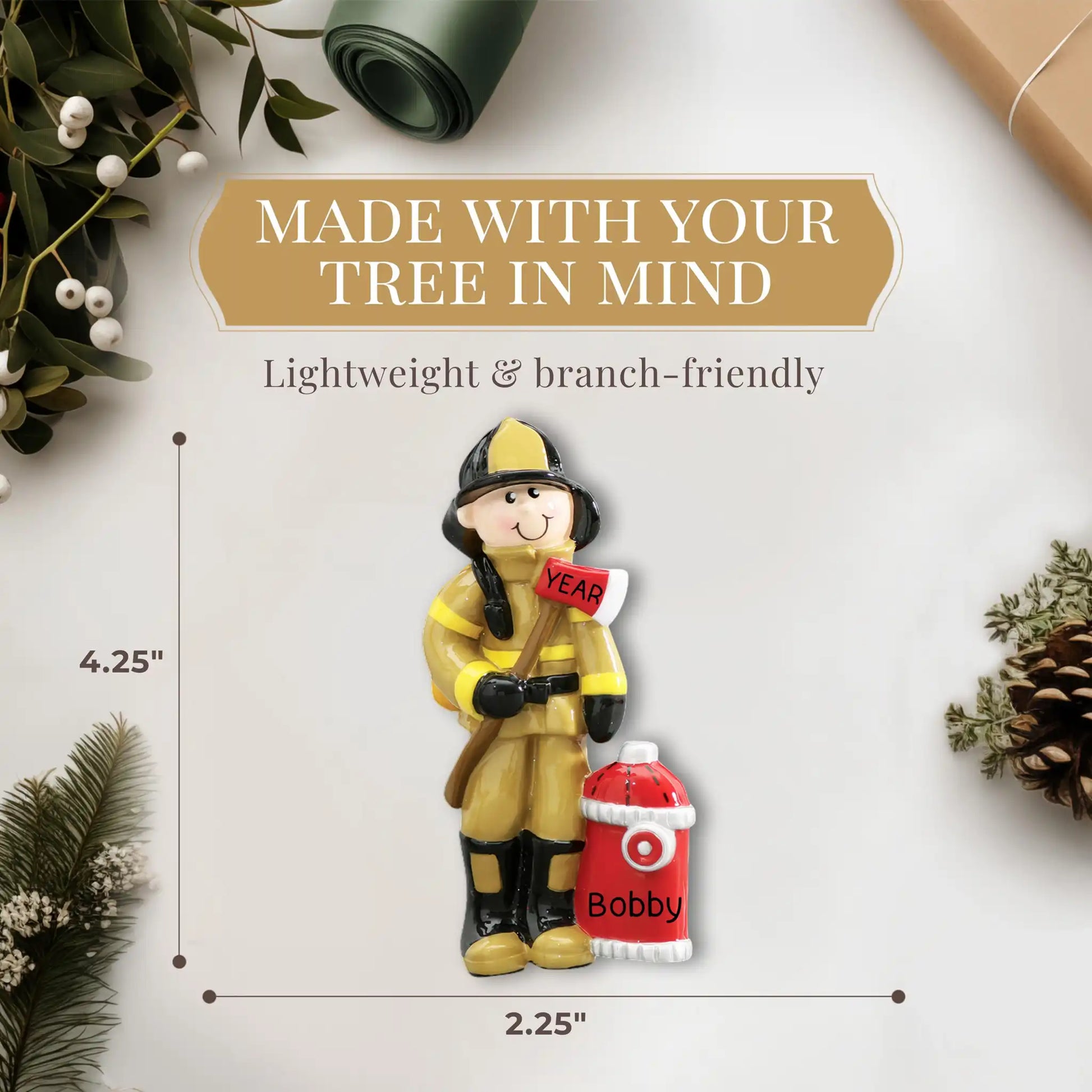 Nuestro adorno personalizado de bombero destaca por su impecable diseño y calidad. Fabricado con materiales duraderos, promete ser un complemento perfecto para cualquier decoración navideña o para cualquier ocasión durante todo el año. Su intrincado diseño captura el espíritu de los bomberos, convirtiéndolo en una pieza impactante que despierta admiración y conversación.