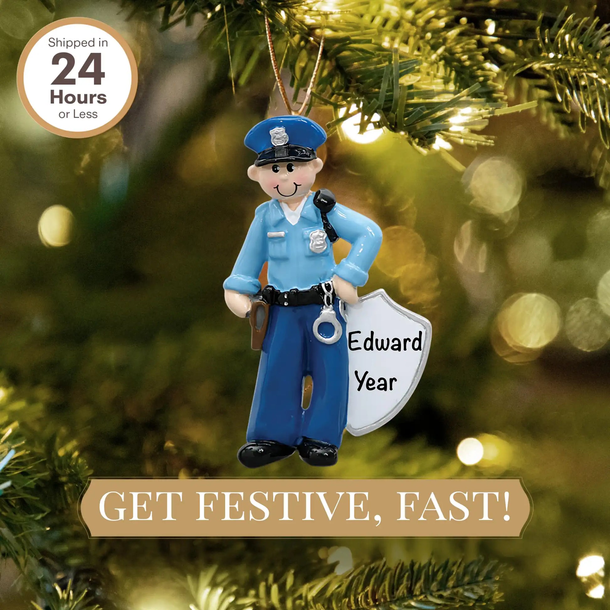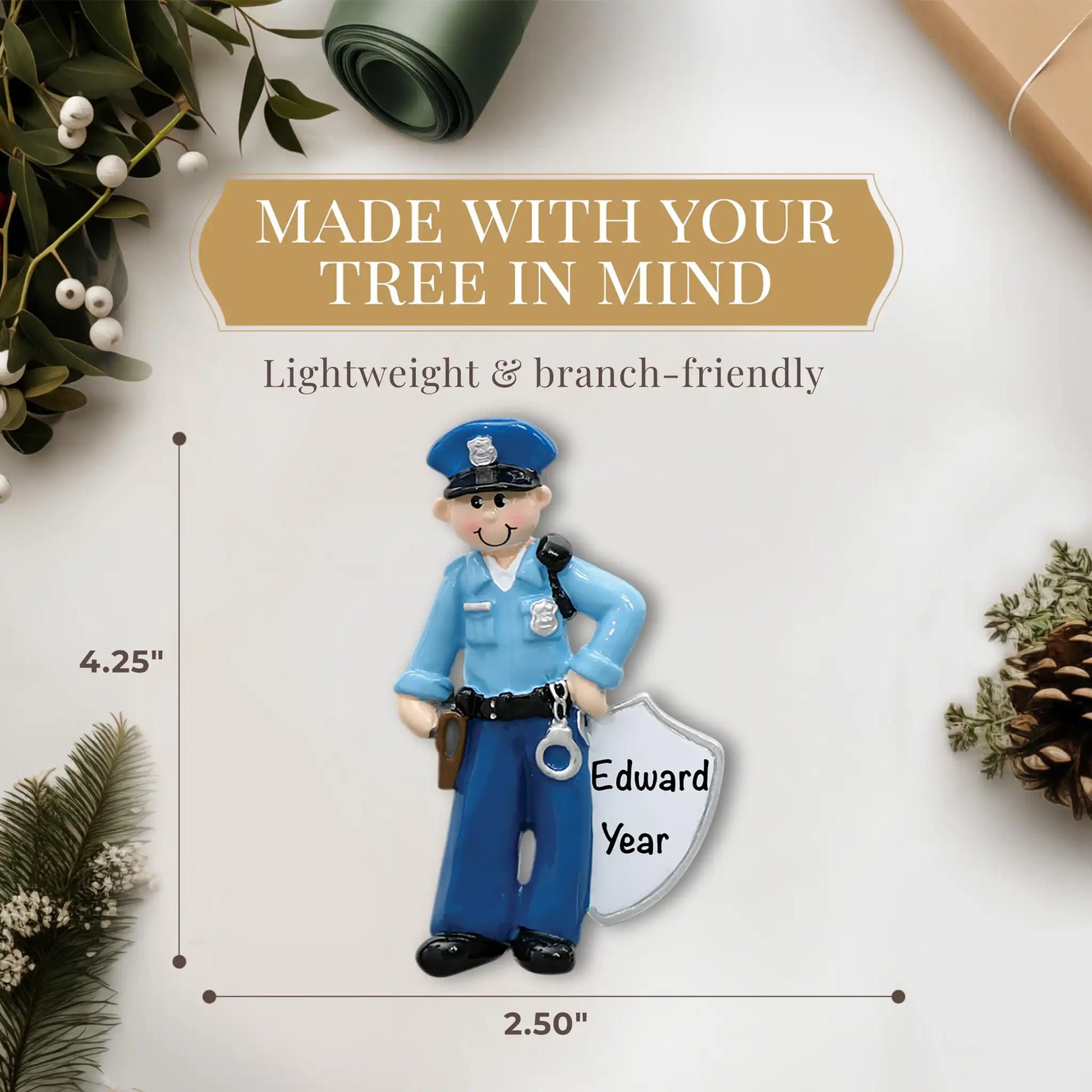 Celebra el heroísmo y la dedicación policial con nuestro adorno de policía personalizado . Un símbolo emotivo de respeto y admiración, este adorno captura a la perfección la esencia del coraje de un policía. Cada pieza está meticulosamente elaborada a mano, lo que le da un toque personal. Un detalle excepcional para cualquier árbol de Navidad o decoración del hogar, con su diseño detallado y colores vibrantes.