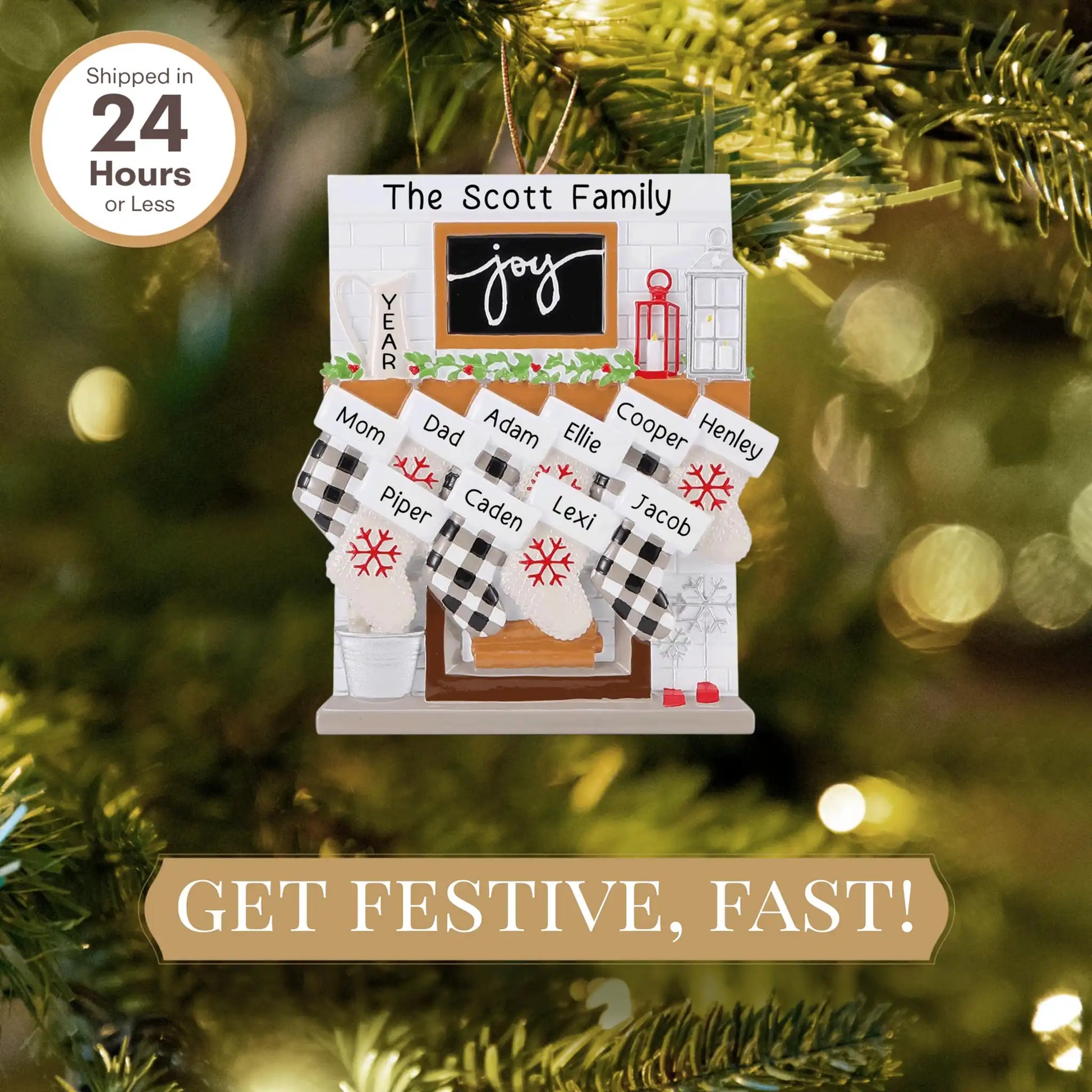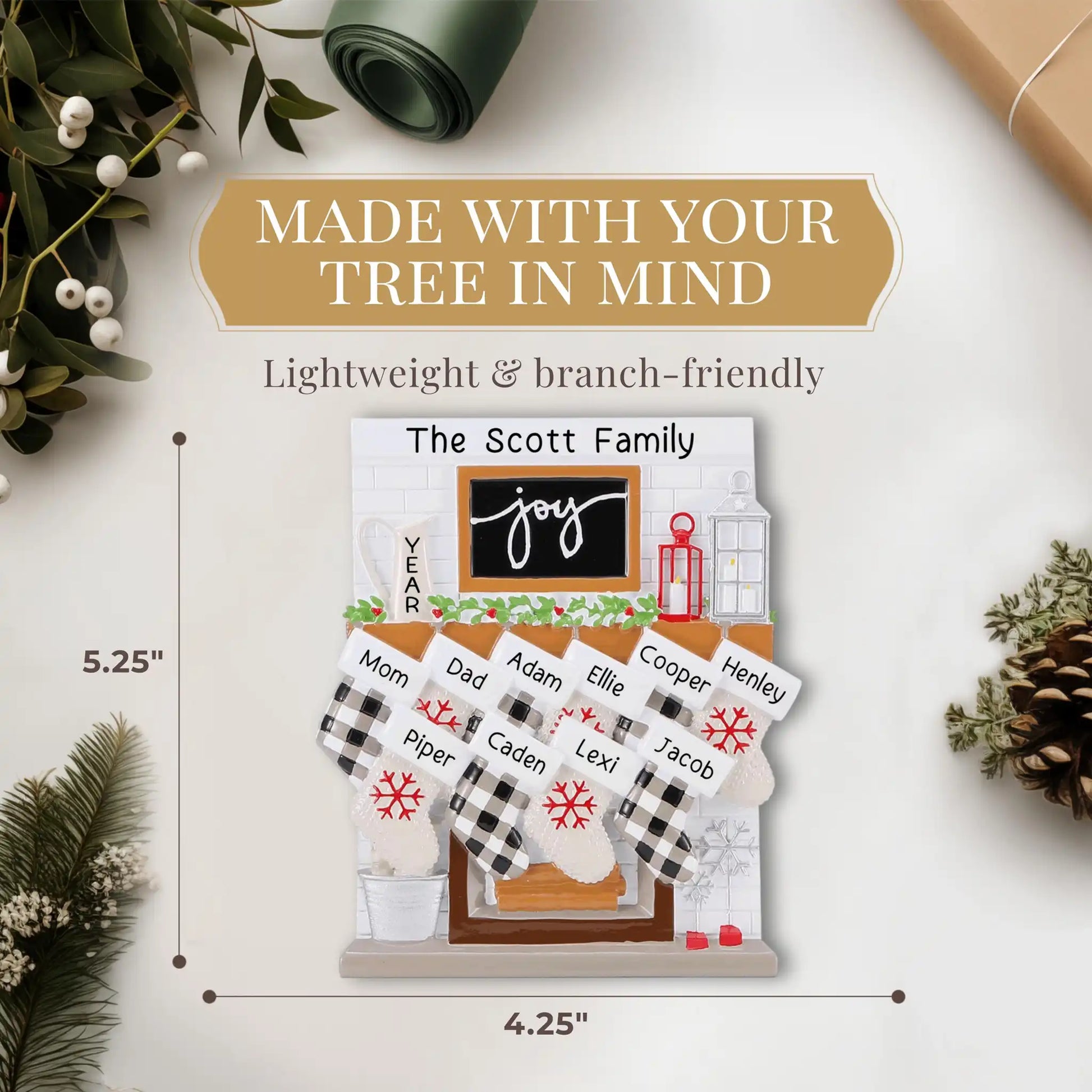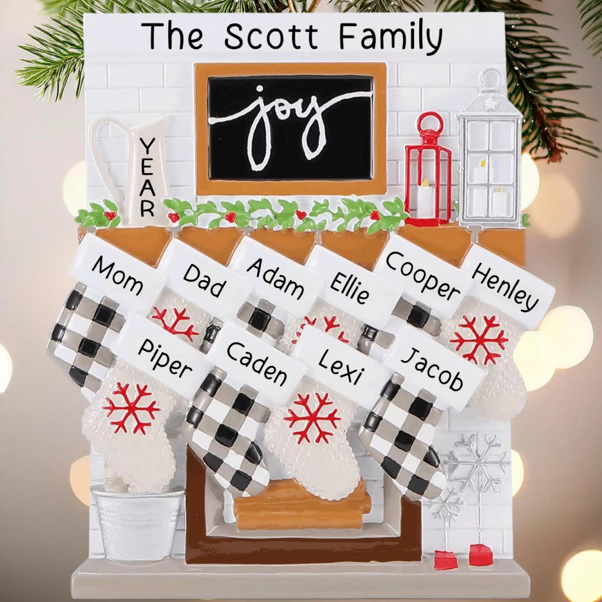 No hay nada como un adorno personalizado para conquistar el corazón de la familia. Este adorno personalizado "Chimenea Joy Family of 10" es más que una simple decoración; es una celebración de la unidad, el amor y la Navidad. Este recuerdo captura la esencia de la diversión familiar junto a la chimenea, inmortalizada con mucho encanto.