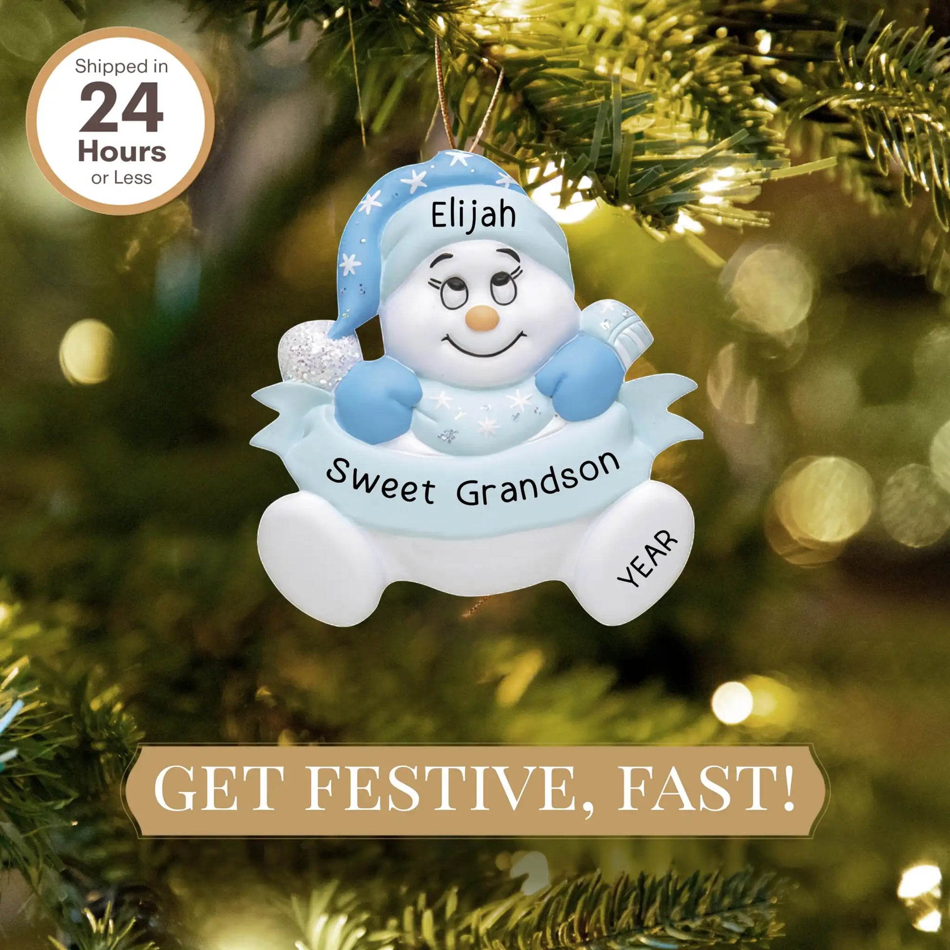 ¡Saluda al nieto más genial del mundo! Este adorable muñeco de nieve está listo para derretirte el corazón con su encanto helado. Con la palabra "Dulce Nieto" escrita en su acogedora bufanda, este adorno es más que un simple adorno: es un preciado recuerdo que celebra la alegría que tu nieto trae en cada Navidad. Perfectamente personalizado con su nombre y el año, ¡es como dar un cálido abrazo de los abuelos, al estilo de un muñeco de nieve!