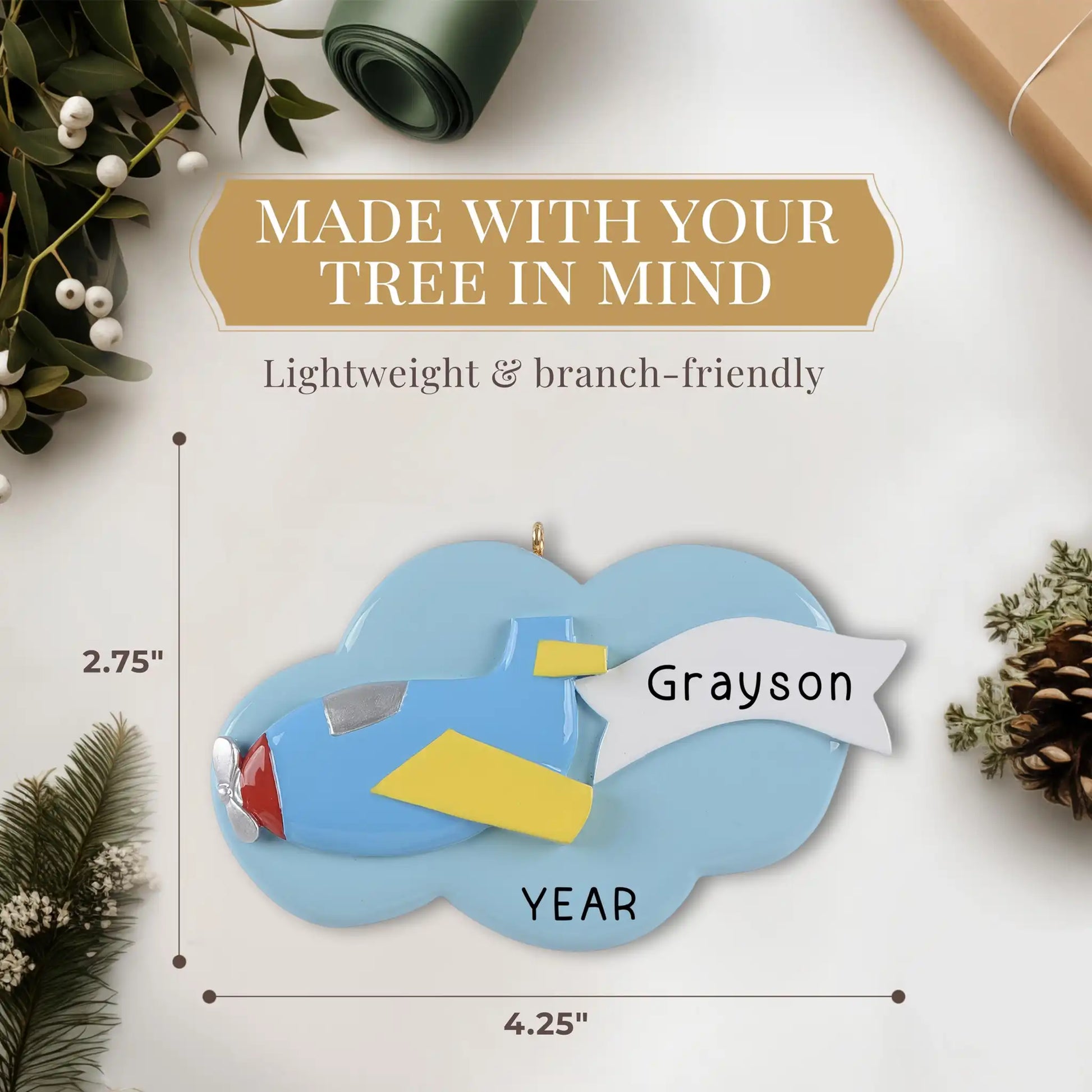 Personalízalo con el nombre de tu hijo para crear un recuerdo especial que hará que su árbol navideño sea aún más divertido y festivo. ¡Ideal para niños que sueñan con volar!