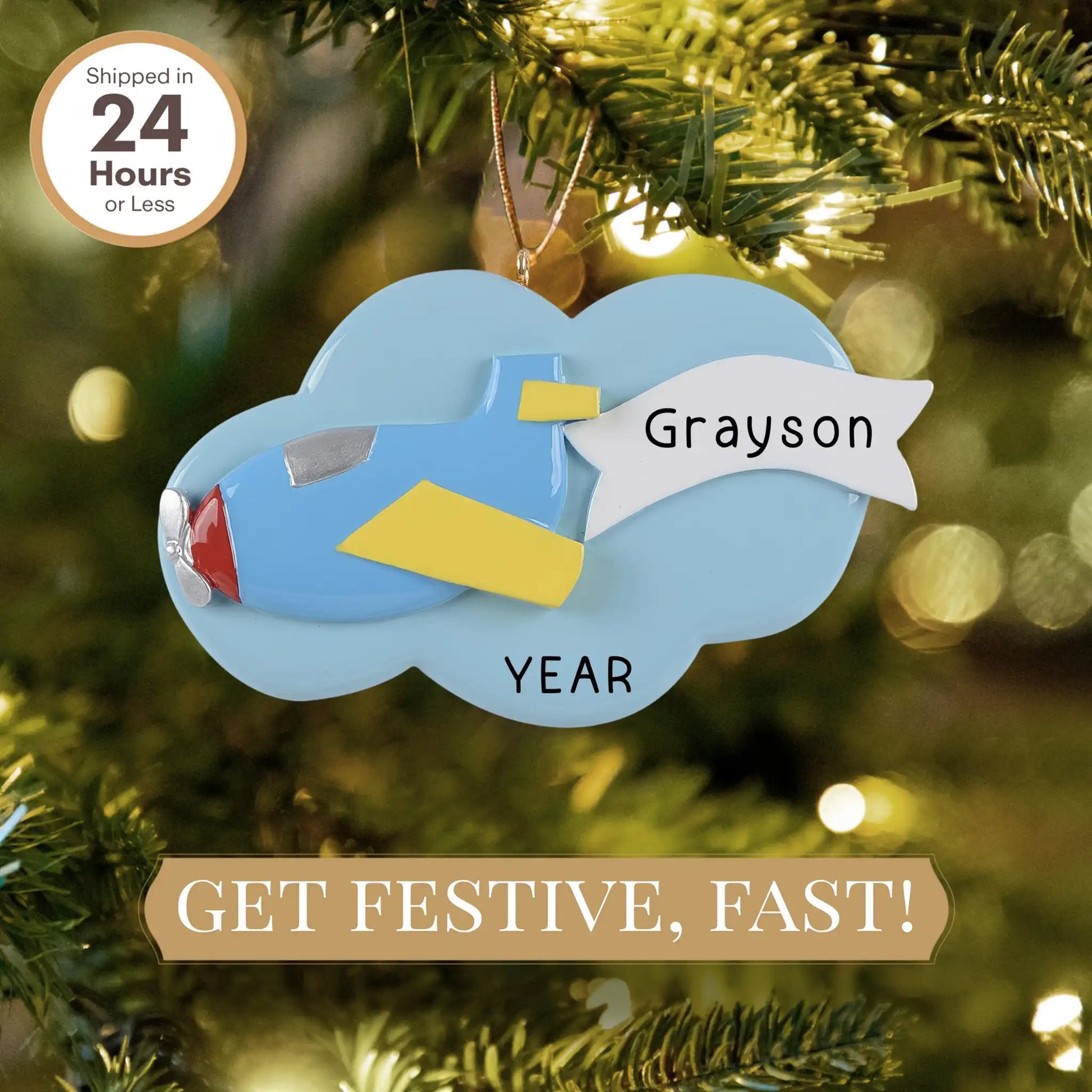 ¡Vea cómo se iluminan los ojos de su hijo con nuestro adorno navideño personalizado de avión de juguete! Con un divertido avión de juguete volando entre las nubes, este adorno es el regalo perfecto para los pequeños entusiastas de la aviación.