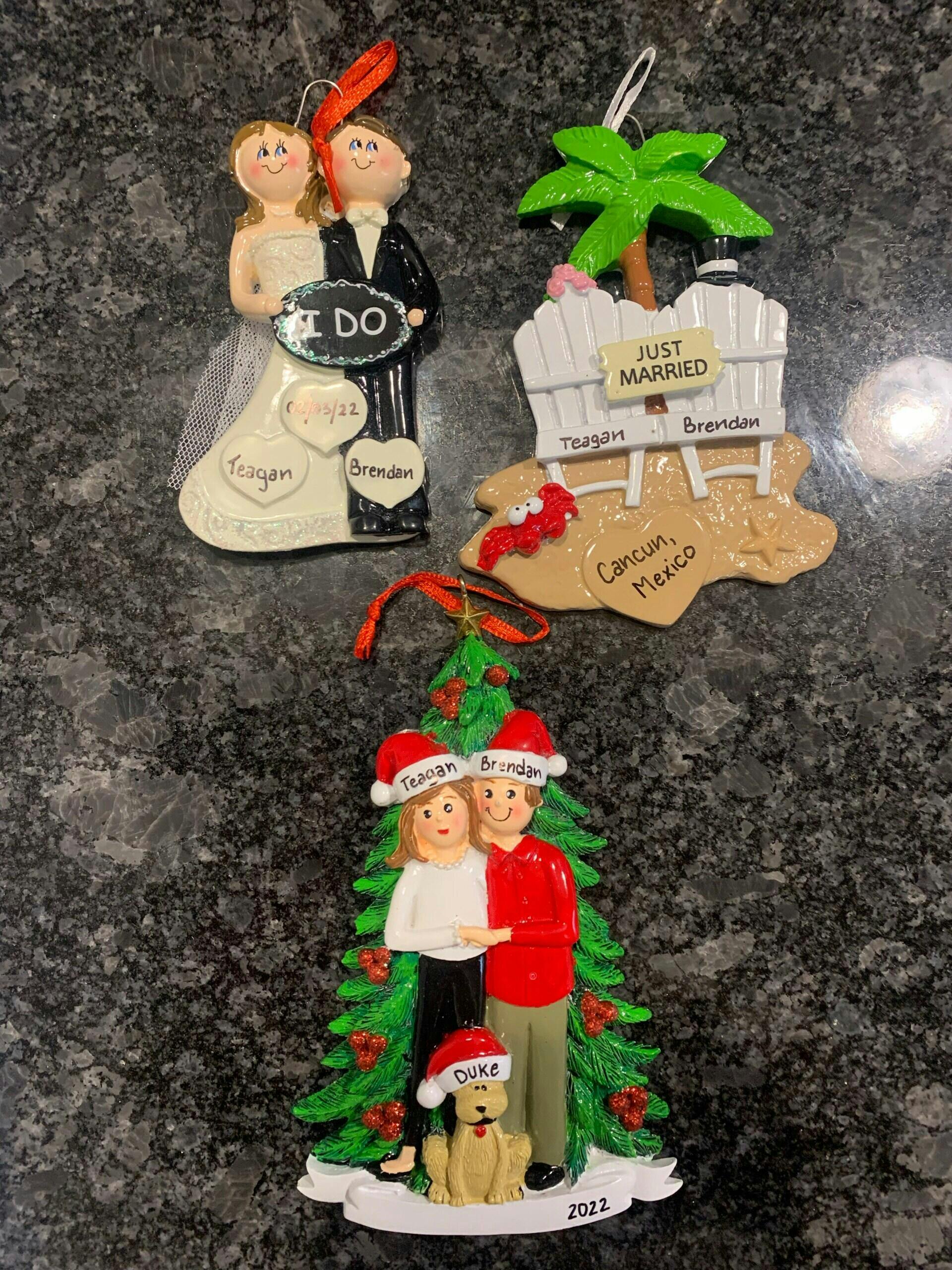 Echa un vistazo a nuestro adorno personalizado de playa para recién casados . Este recuerdo artesanal es el símbolo por excelencia del amor, diseñado para conmemorar su primera Navidad juntos como una feliz pareja casada. Al decorar tu árbol, este adorno te recordará las playas donde celebraron su unión. Despertará alegría y nostalgiacon cada reflejo brillante.
