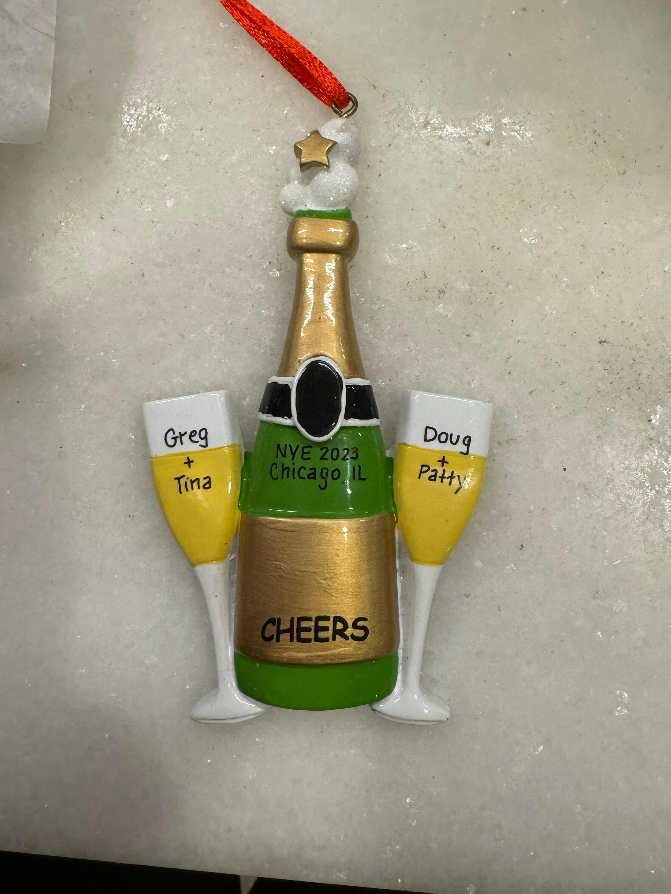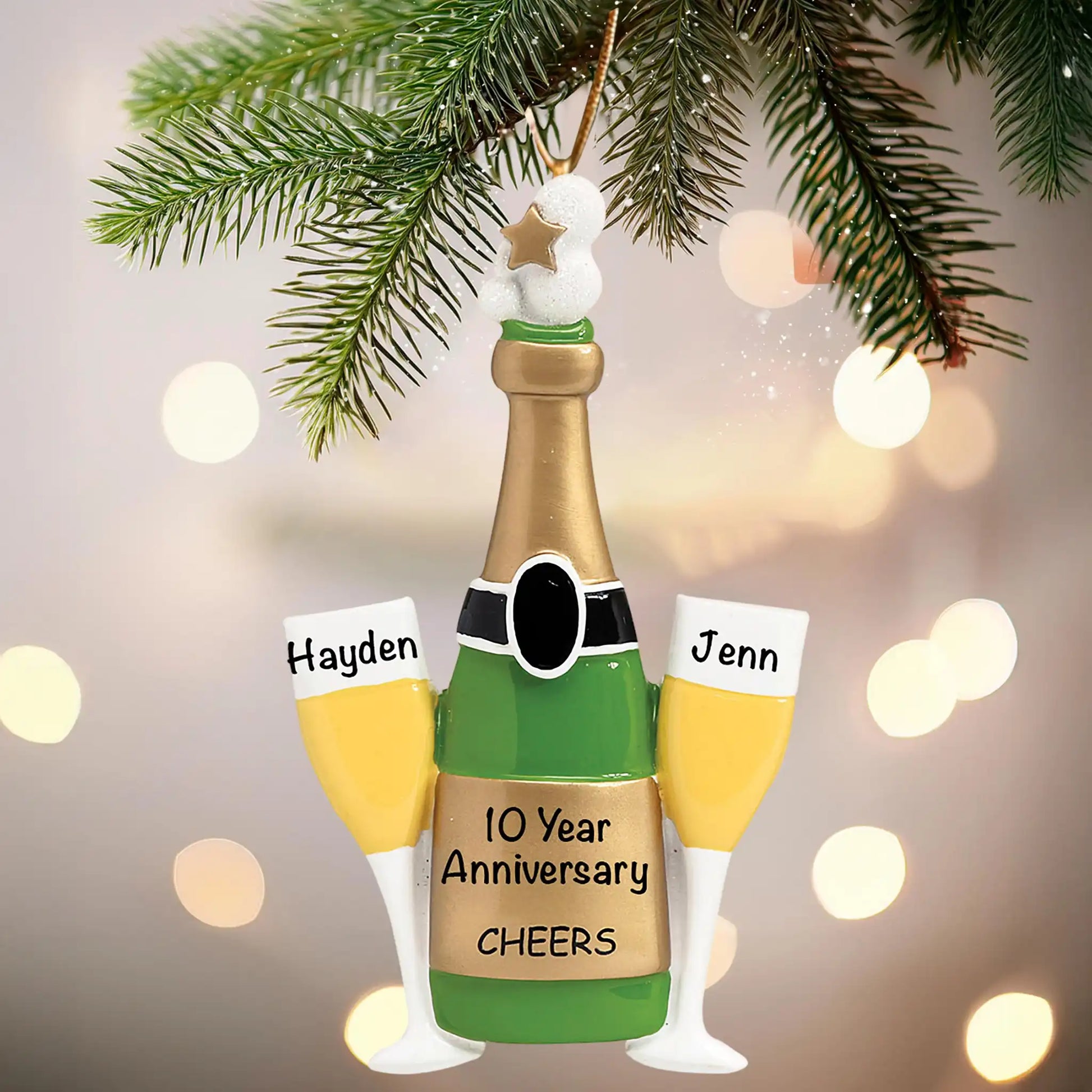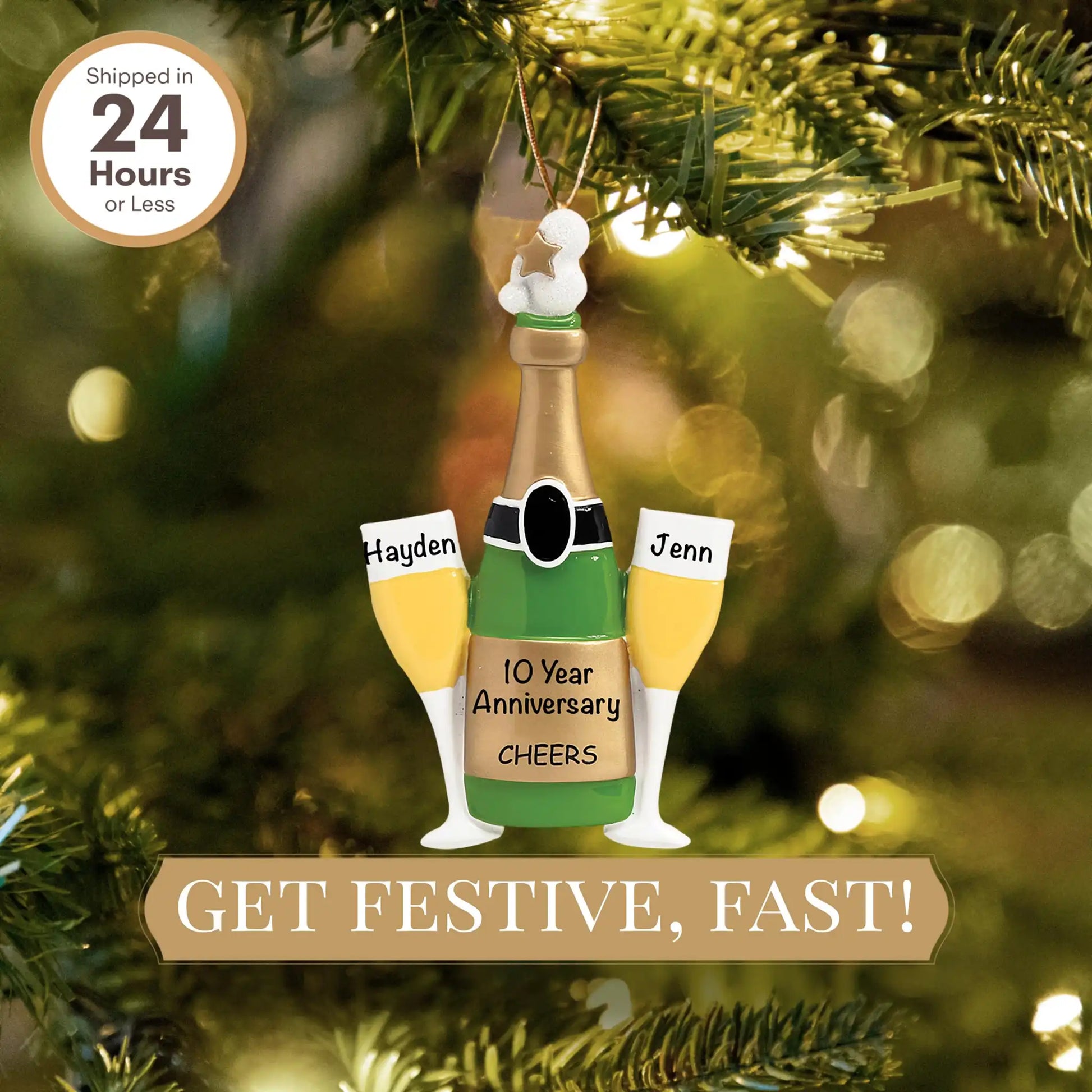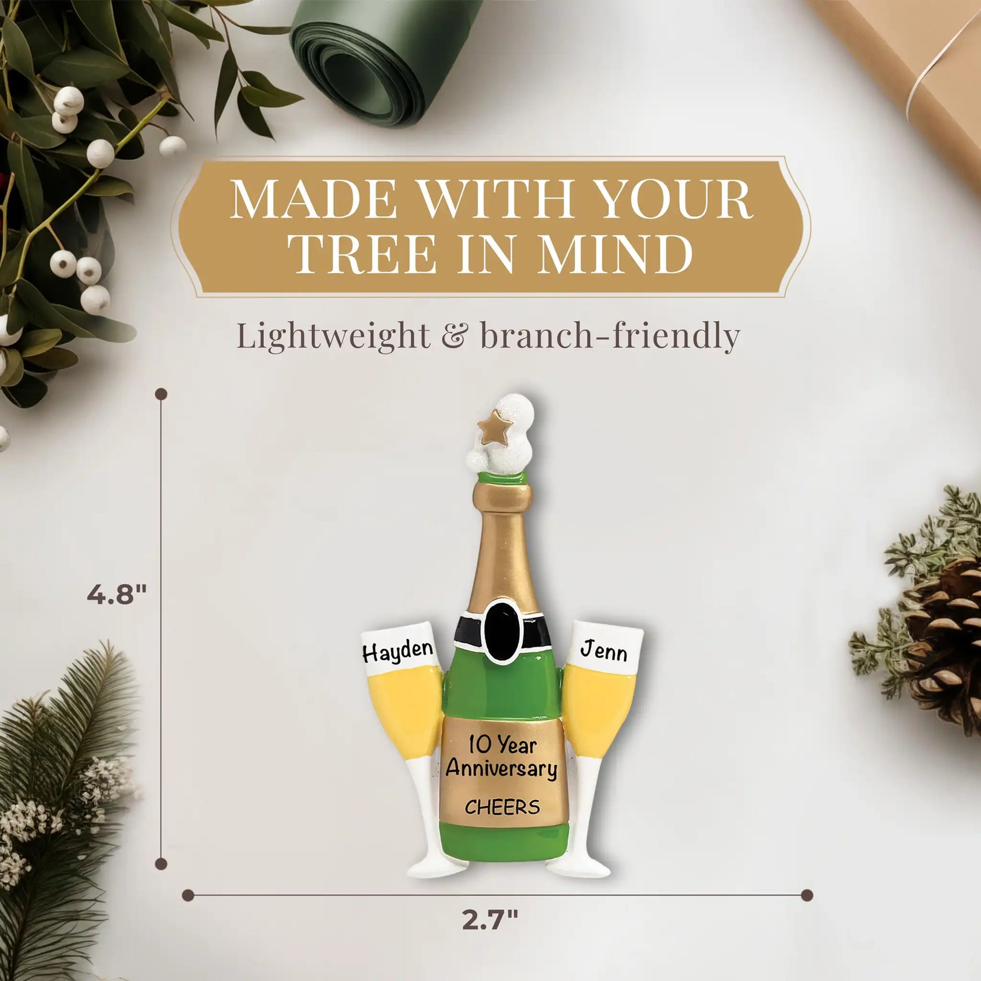 ¡Descorcha la botella de champán! ¡Un amor como este merece un brindis! Ya sea que celebren un brillante aniversario de 10, 20, 30 o incluso 50 años, o simplemente brinden por otro hermoso capítulo juntos, este adorno de champán personalizado le da todo el encanto y la alegría de una verdadera celebración.