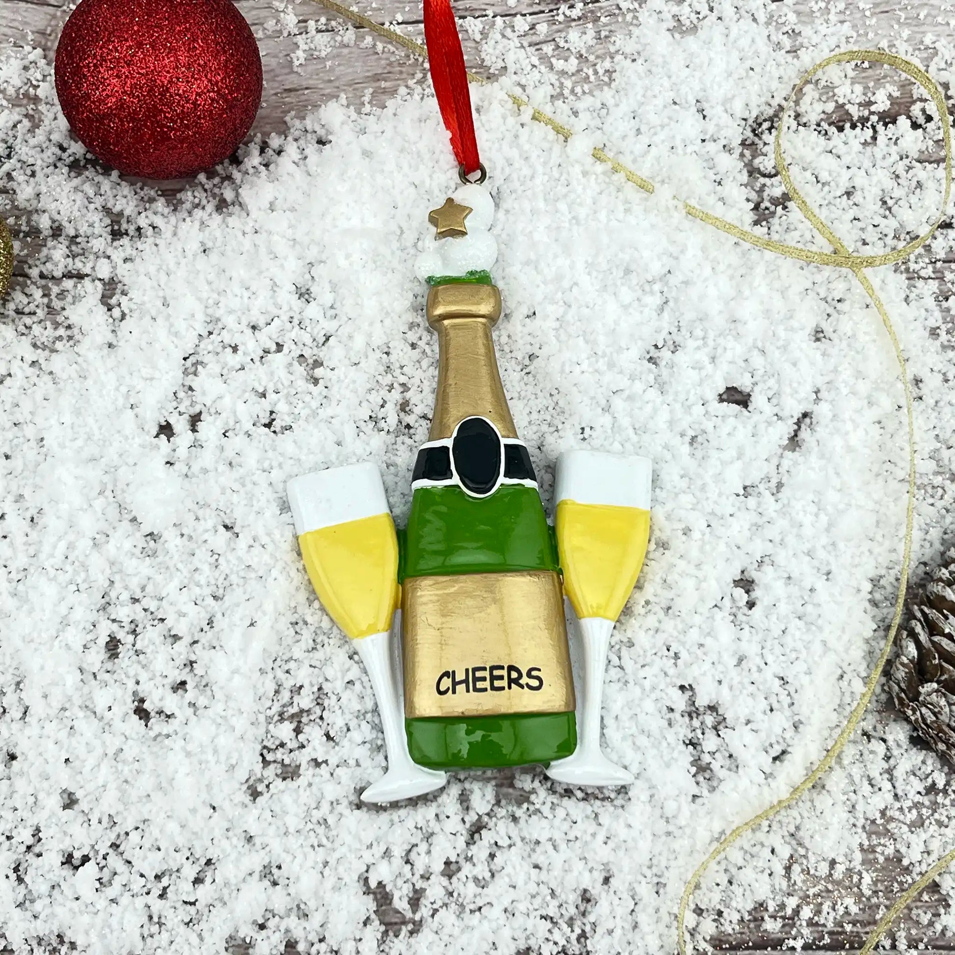 Con dos vasos tintineantes y una botella festiva de champán, está personalizado con ambos nombres y el año importante o un mensaje, lo que lo convierte en el recuerdo perfecto para la feliz pareja.