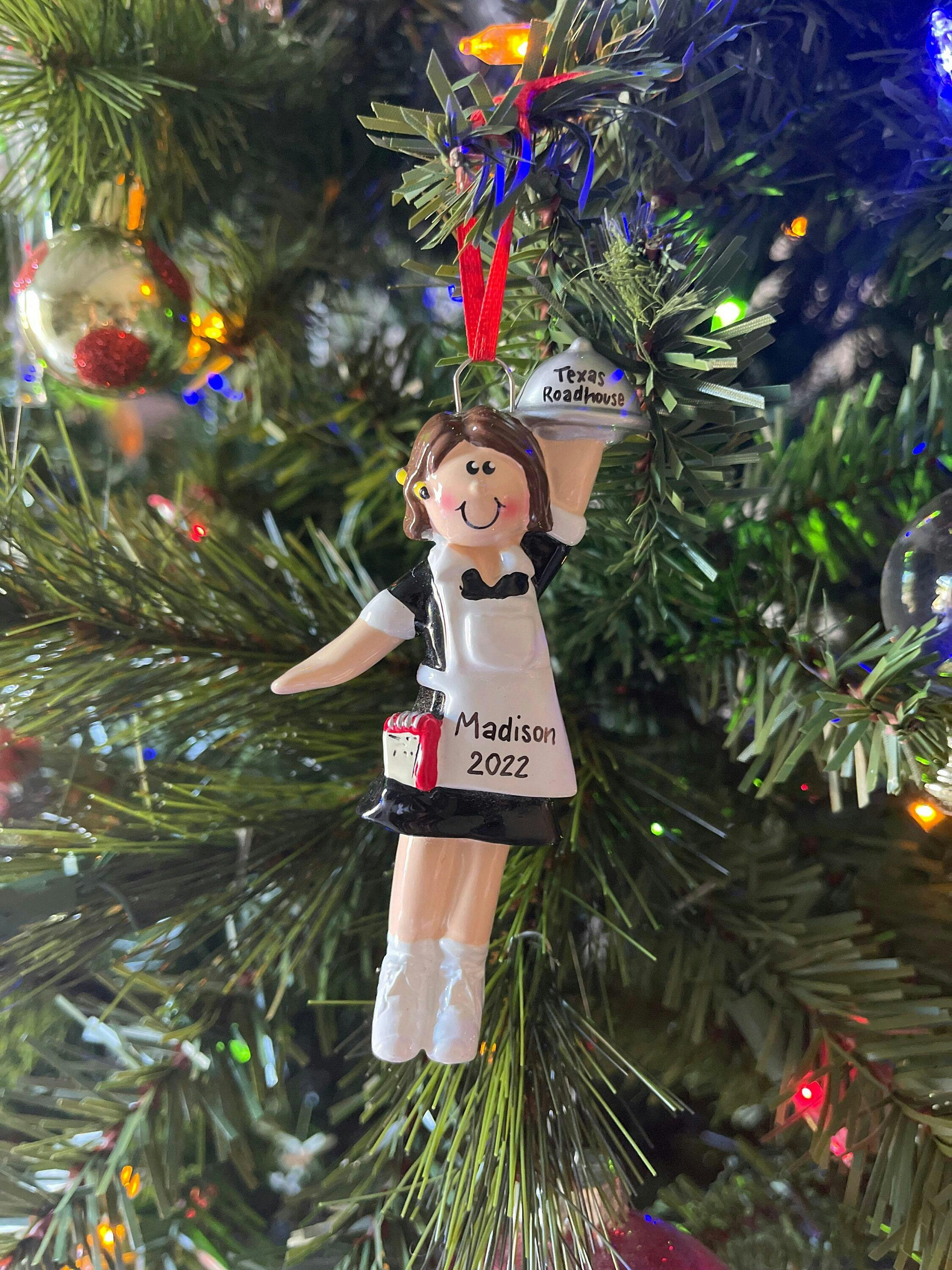Ya sea para una festividad, un cumpleaños o una muestra de agradecimiento , este adorno es el regalo ideal para cualquier camarera o mesero. Es una forma sincera de mostrar gratitud y reconocer su dedicación al trabajo. Fácil de pedir y un placer recibir, este adorno personalizado sin duda le sacará una sonrisa.