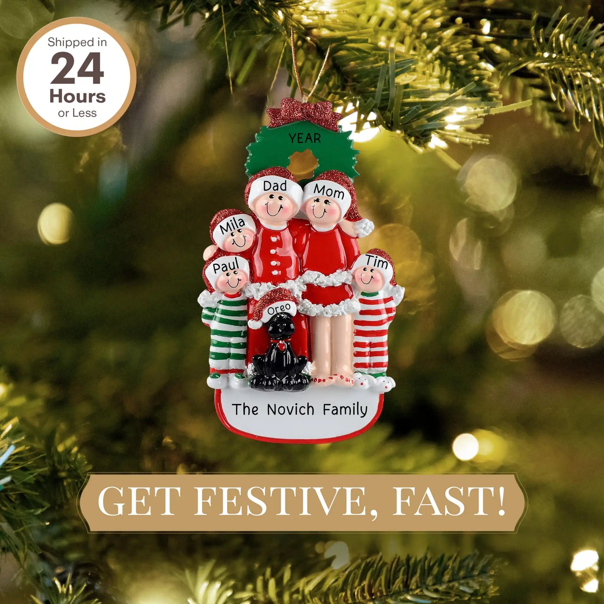 Experimente la alegría de inmortalizar a su familia en un encantador adorno navideño. Este adorno navideño personalizado no es una decoración cualquiera; es una representación personalizada de su familia, con una imagen cariñosa de su querido perro negro. Pintado a mano con maestría, muestra las características únicas de su familia, desde sonrisas hasta atuendos festivos, convirtiéndolo en una adición irremplazable a su colección navideña.