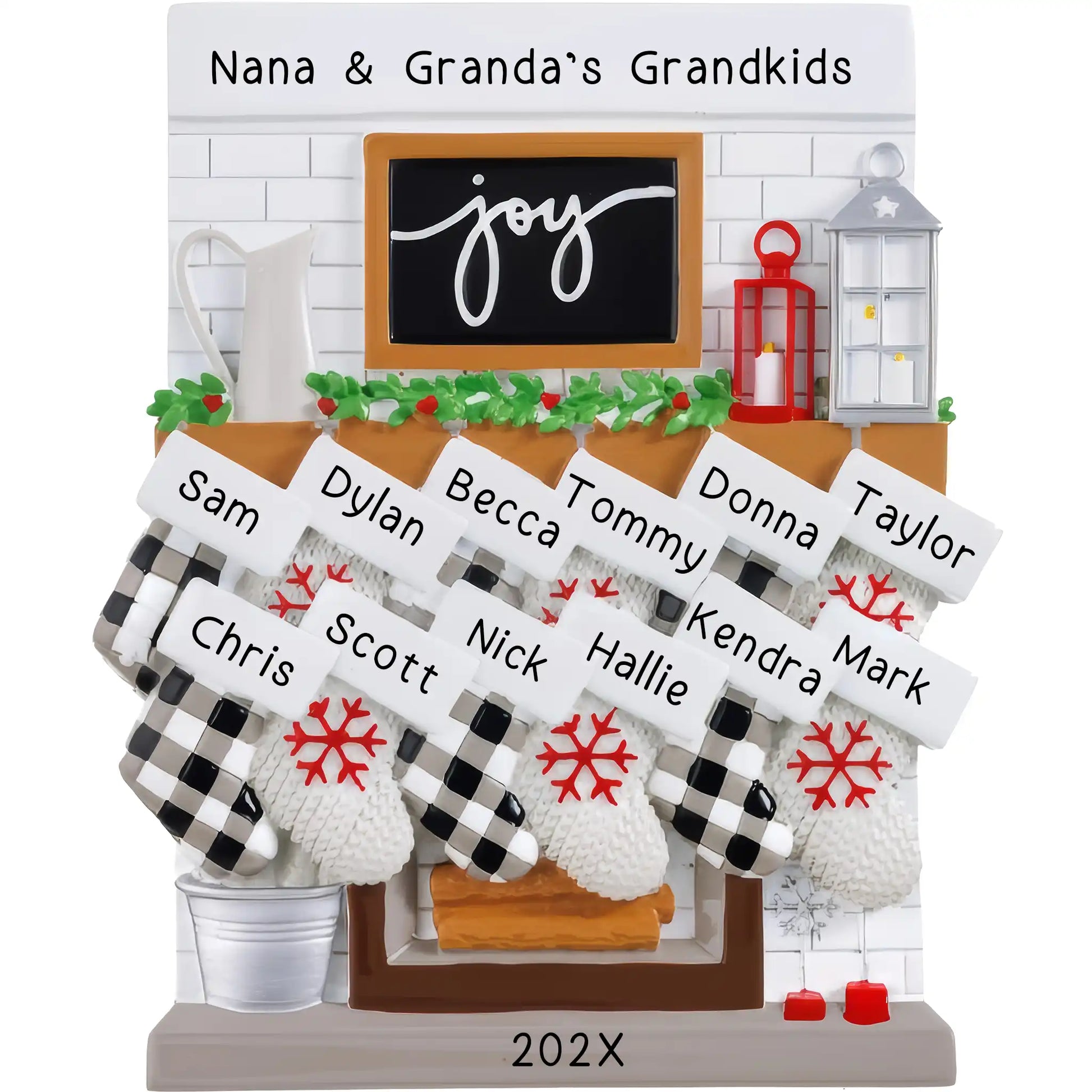 Lleva la calidez de la unión familiar a tu repisa o estantería con esta encantadora decoración de mesa personalizada para la chimenea de tus nietos. Diseñada especialmente para los abuelos, esta decoración festiva incluye una acogedora chimenea, medias navideñas decoradas y el toque perfecto de alegría navideña. Personaliza cada una de las 12 medias con los nombres de tus queridos nietos (¡o de toda la familia!) y añade el año para que sea un recuerdo inolvidable.