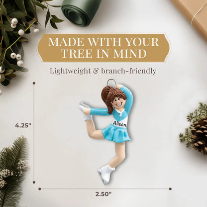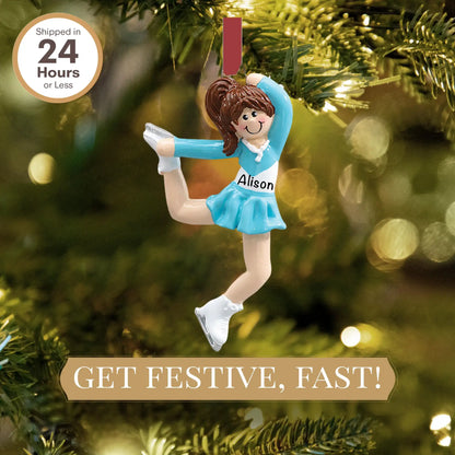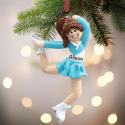 Girl ice skater effortlessly twirling around the ice skating rink! One of our many hobbies related ornaments perfect for kids and adults who enjoy different activities both indoor and outside! Don't forget to customize her with a name and the year!