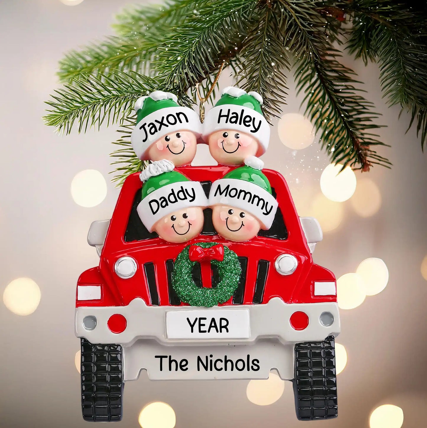 With our suv family of 4 christmas ornament, you can celebrate this festive season. It's a delightful reflection of the loving bond shared during the holidays, perfectly reflecting the warmth and joy of family trips. For many, road trips hold a special place. What better way to immortalize those moments than with an ornament that hangs proudly on your Christmas tree?