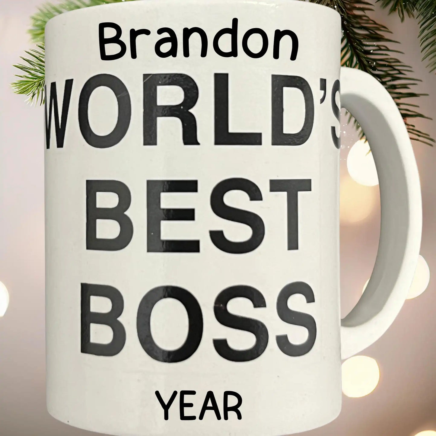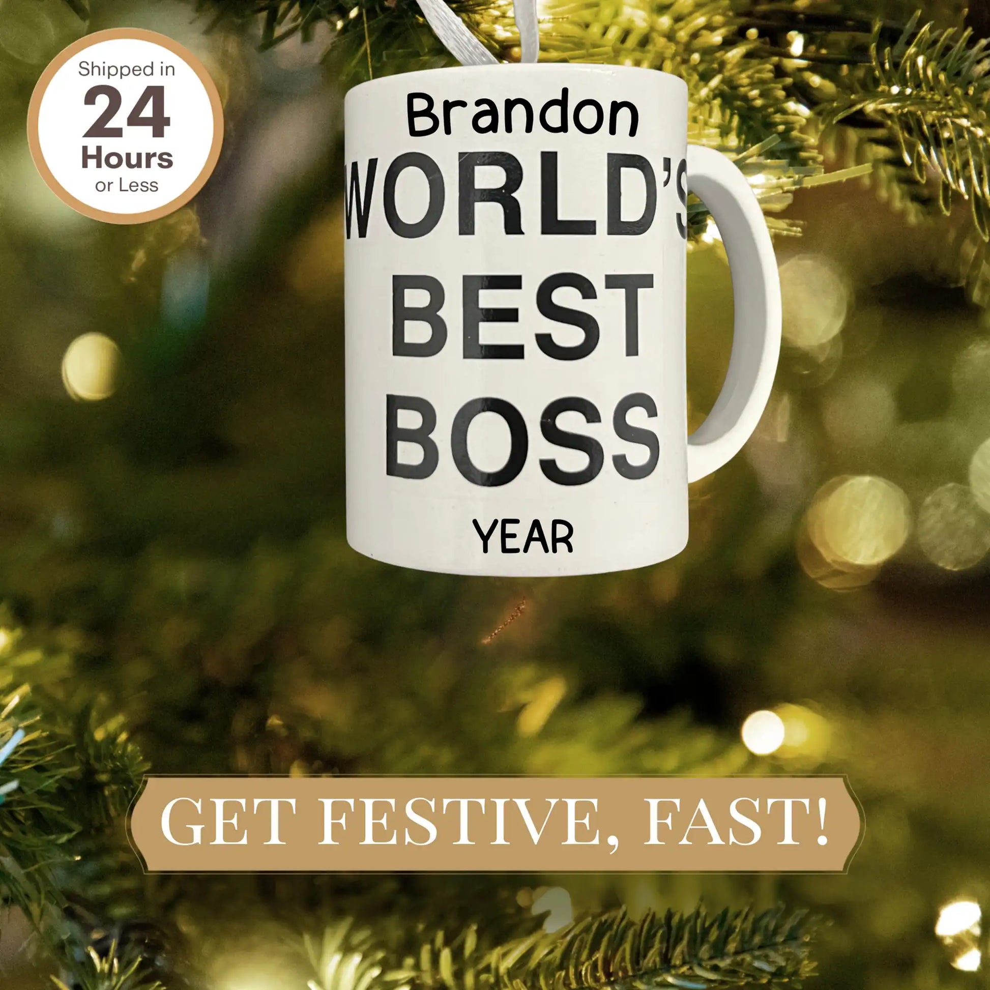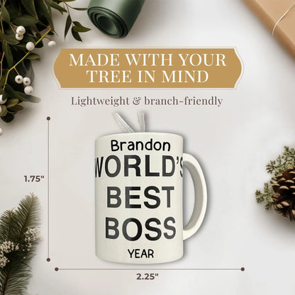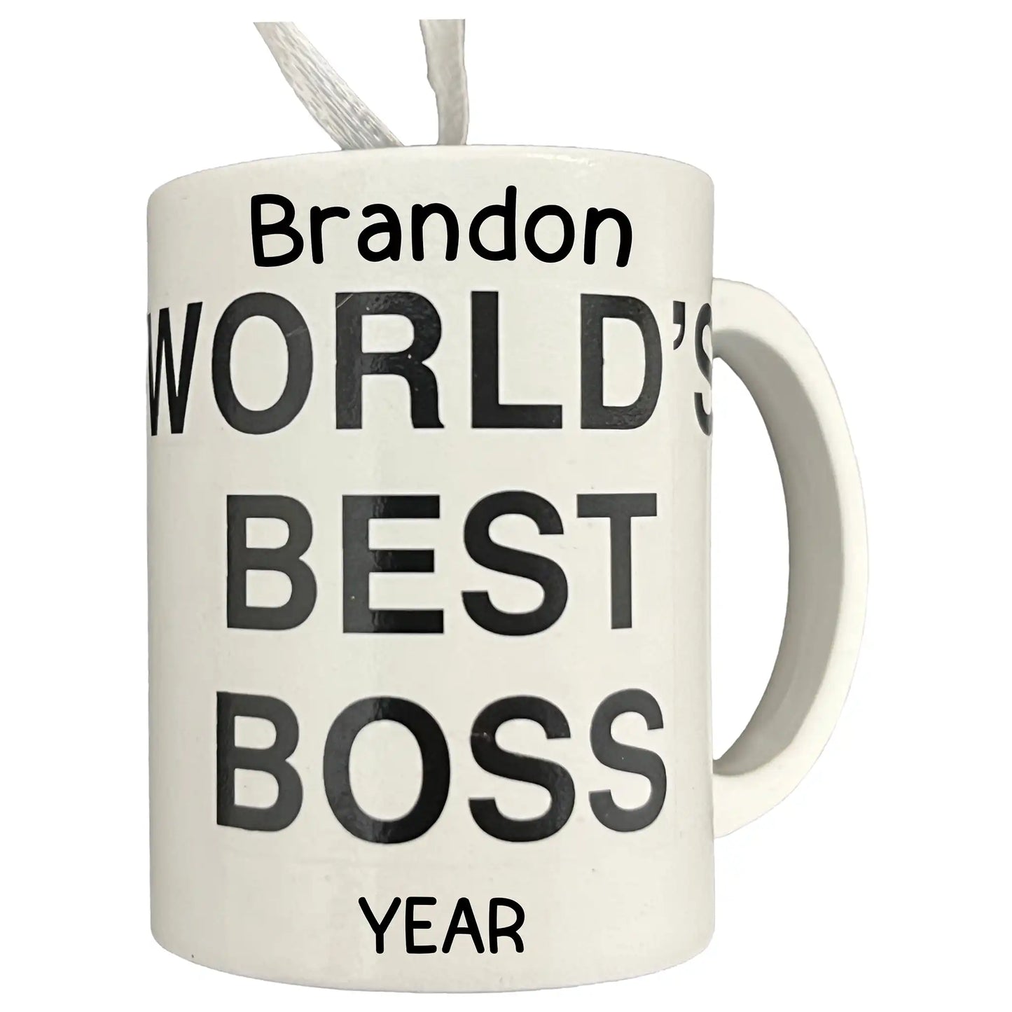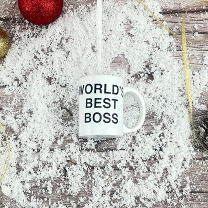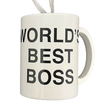 Adorn your Christmas tree with the ultimate homage to office culture - The office best boss coffee mug Christmas ornament. This whimsical ornament encapsulates the iconic 'world's best boss' mug, instantly recognizable to any fan of the beloved series. Perfectly sized to blend with your festive decor, it's a conversation starter that promises a chuckle every time you see it.